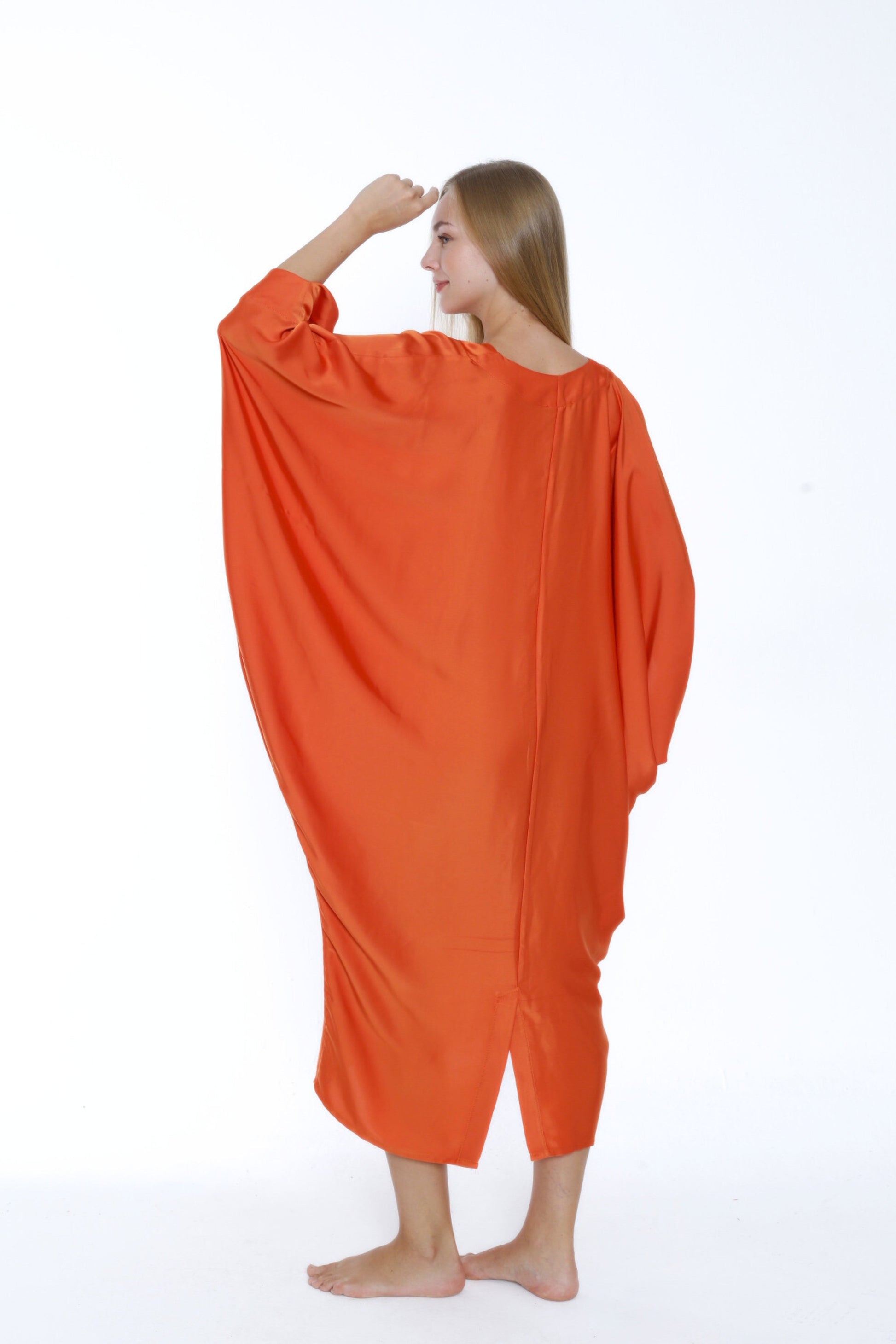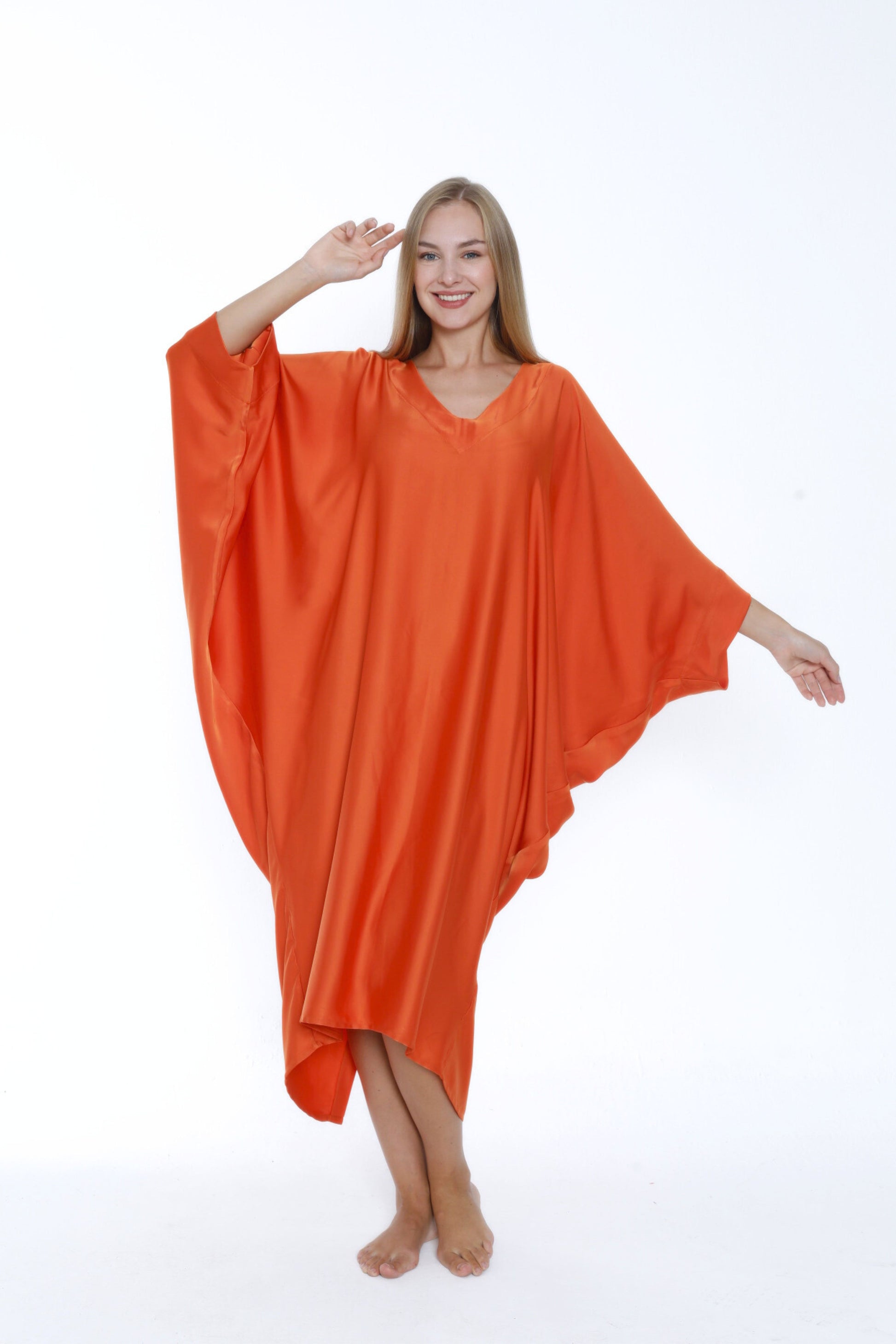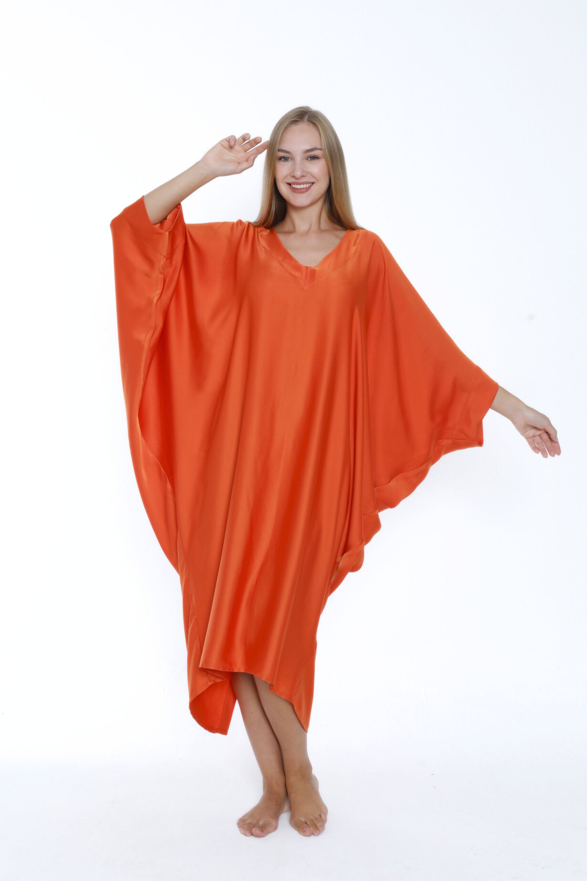 Adopt the French rules of quiet luxury with the Isabela Amie Paris Modern Classic Shade of Orange Kaftan. Inspired by the timeless elegance of French haute couture, this vibrant orange silk satin kaftan, frequently seen in the collections of Hermès, offers a chic, modern twist with its soft V-neckline. The luxurious fabric flows effortlessly over your silhouette, creating a graceful yet striking look that’s perfect for both casual and formal occasions. Lightweight, wrinkle-free, and cool, this kaftan can be styled with bold or neutral accessories for a look that embodies understated sophistication with a pop of color.