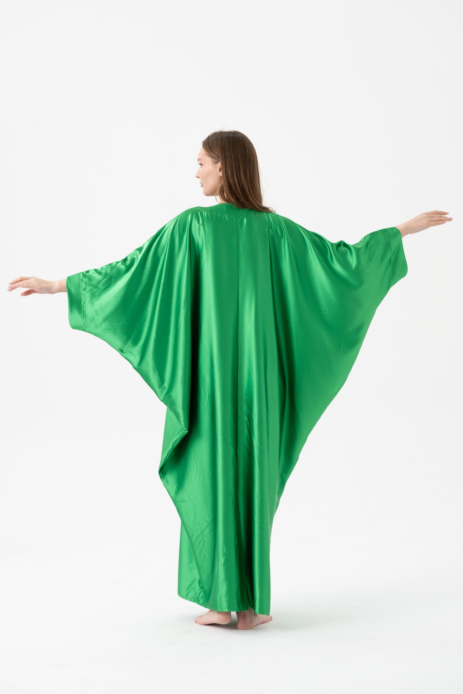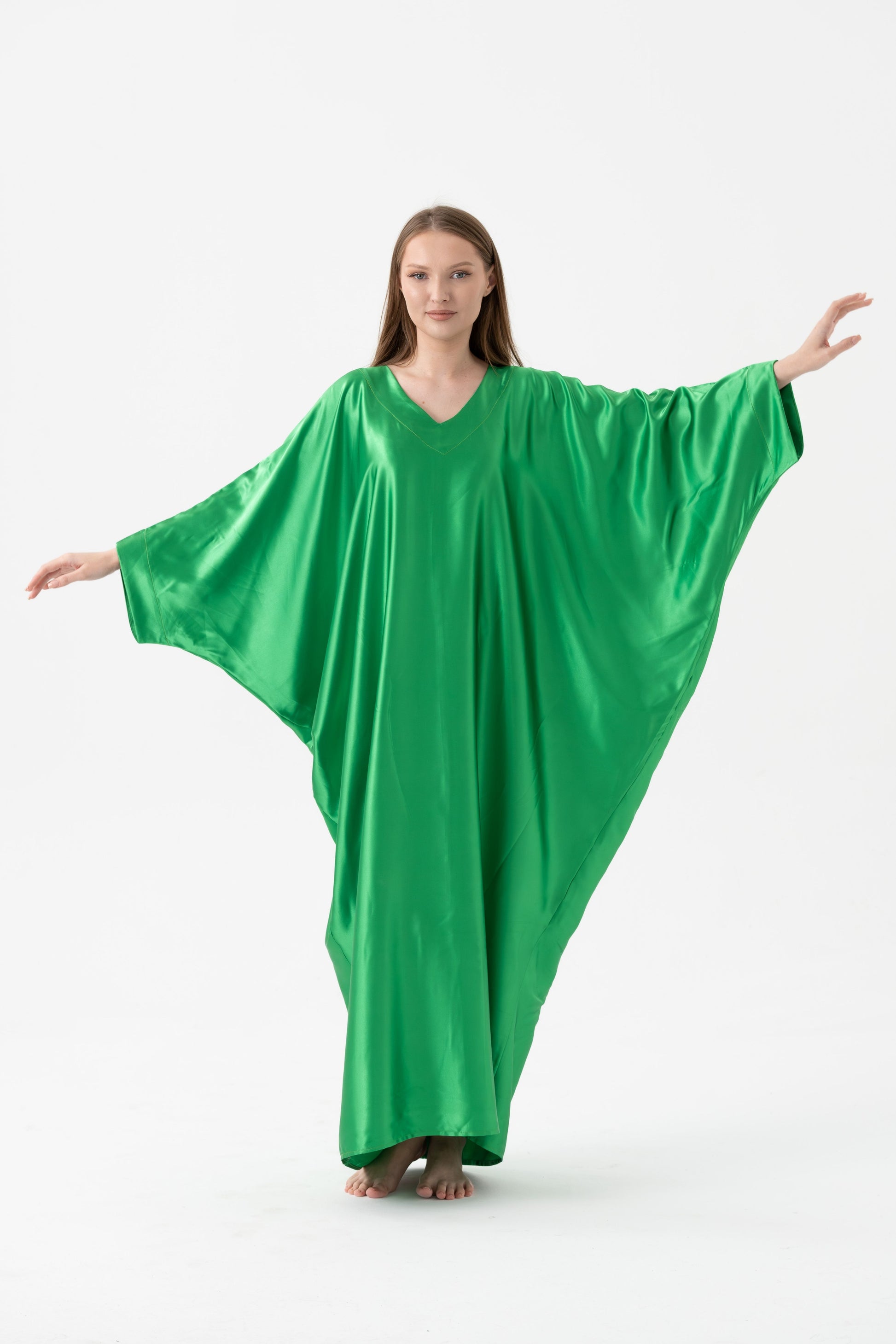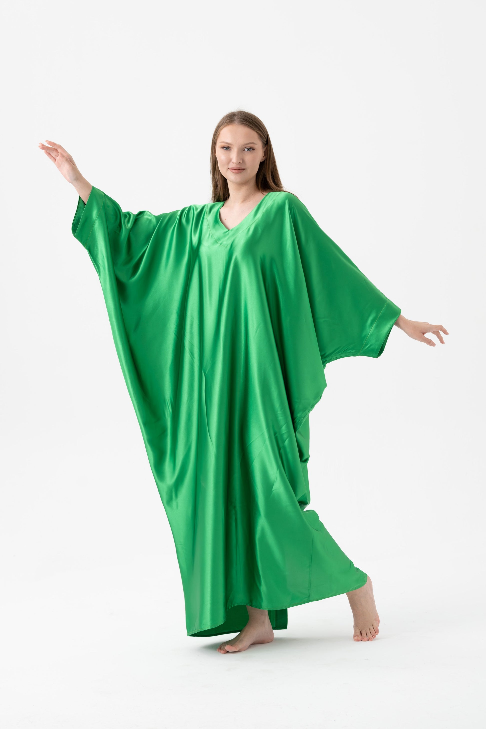 Radiate confidence and sophistication with the Isabela Amie Paris Modest Country Club Kelly Green Kaftan. This luxuriously lightweight silk satin creation wraps you in vibrant elegance, perfect for a tennis tournament, a Mediterranean cruise, or an upscale cocktail lounge. The dazzling Kelly green, a symbol of renewal and abundance, complements every skin tone, making it the ultimate choice for those who refuse to compromise between style and modesty. With its flowing silhouette and graceful drape, this kaftan offers modest fashion that is both timeless and beautifully bold, ensuring you feel stunning wherever you go.