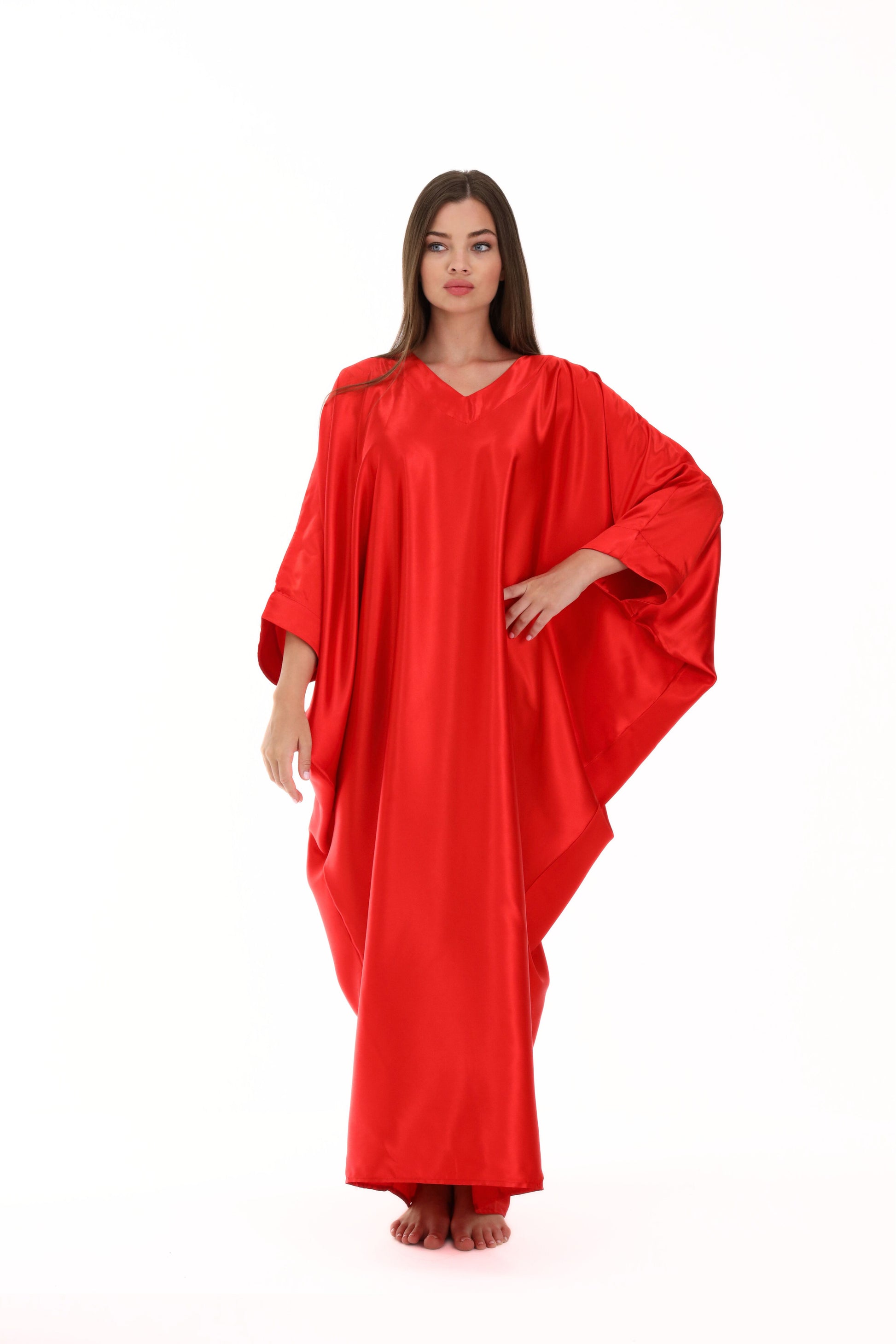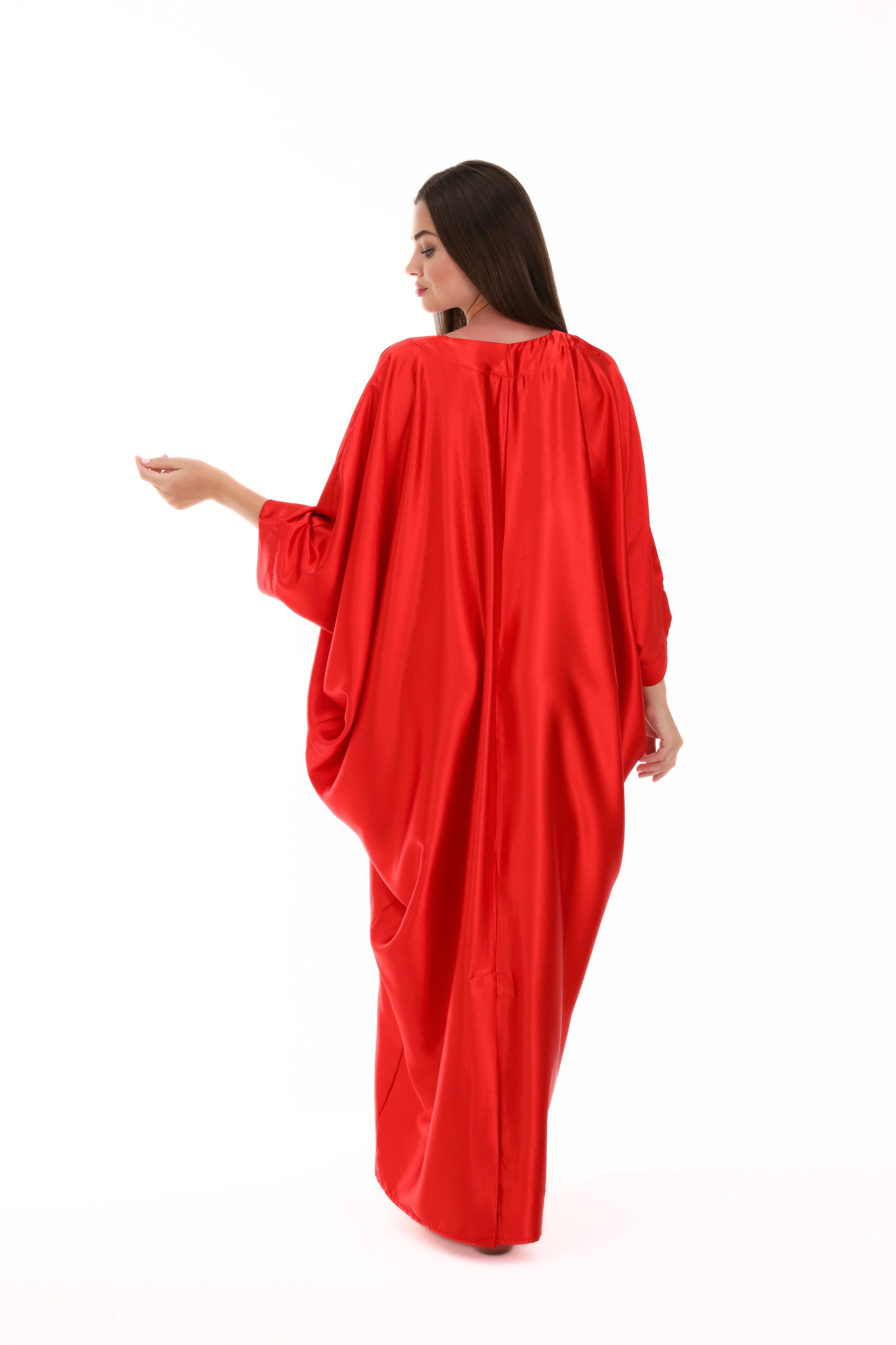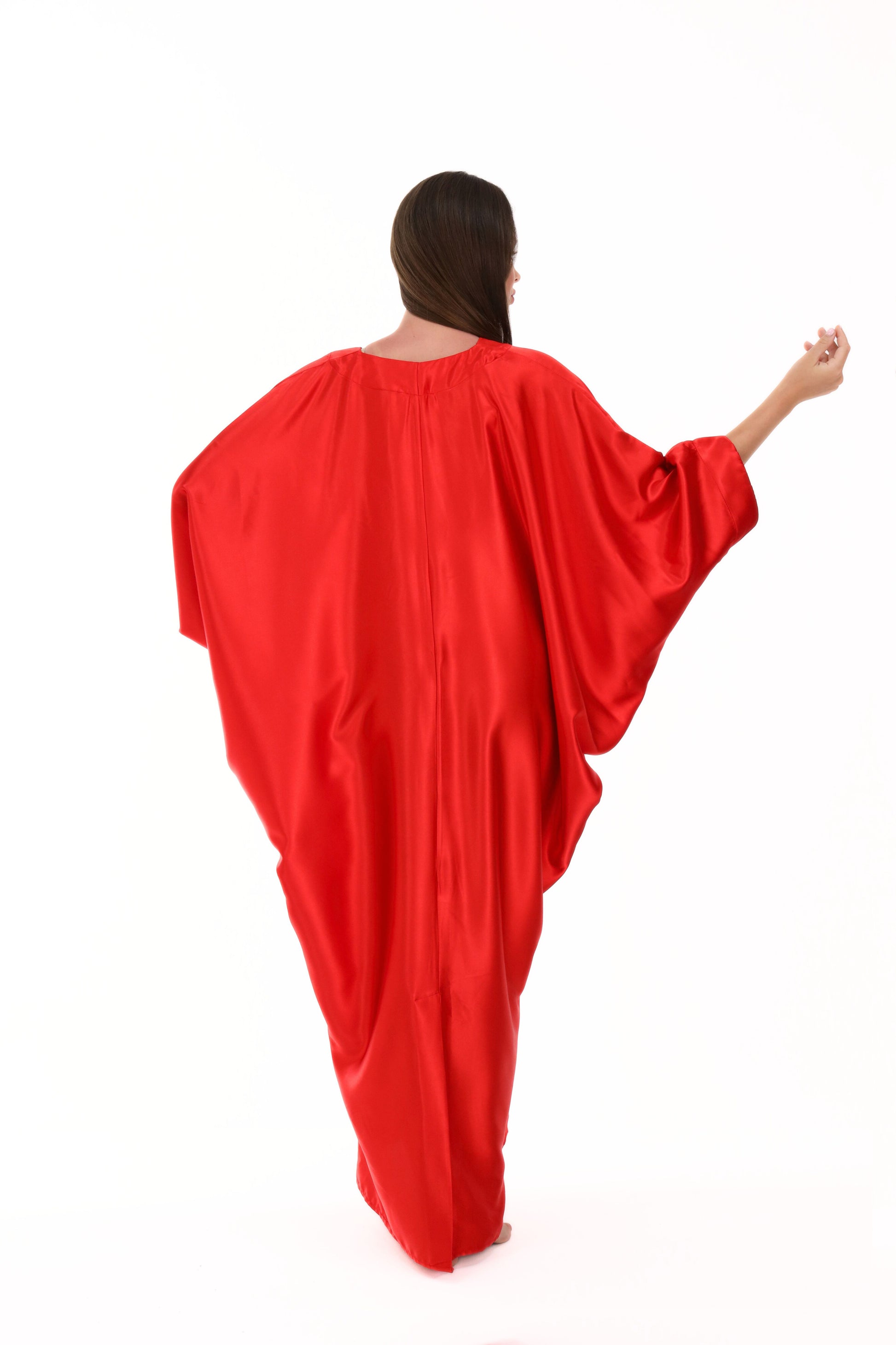 Embrace the beauty of modest fashion with the Isabela Amie Paris Modest Date Night Red Kaftan. Dress to impress and be the passionate showstopper with the Isabela Amie Paris classic red silk satin kaftan. This elegantly timeless red dress will be sure to turn heads as it romantically drapes over your body giving a slimming sensual silhouette. This kaftan is sure to boost your confidence and suitable for any occasion as it is light weight and breathable. Style it with a red or nude lipstick and a belt of any color—including the same or a different red.