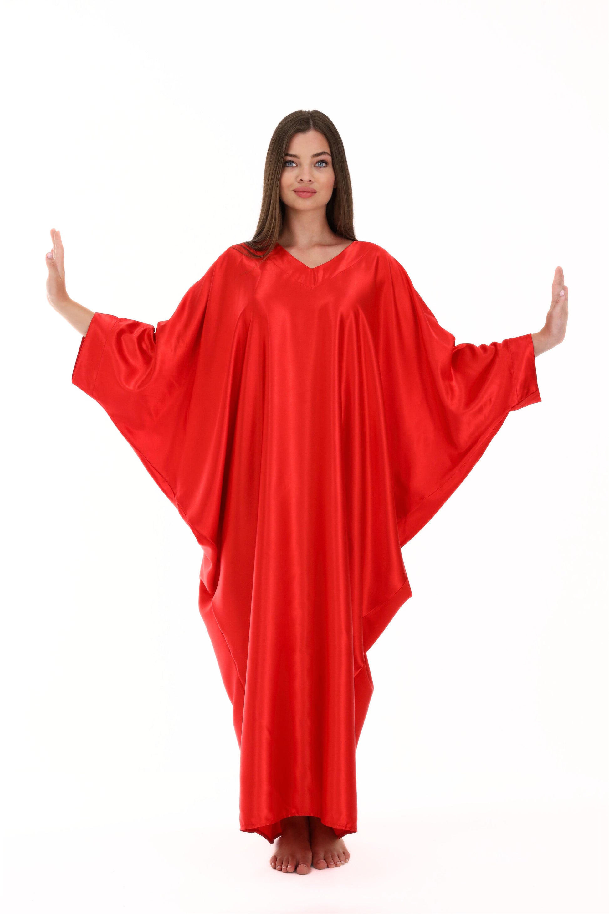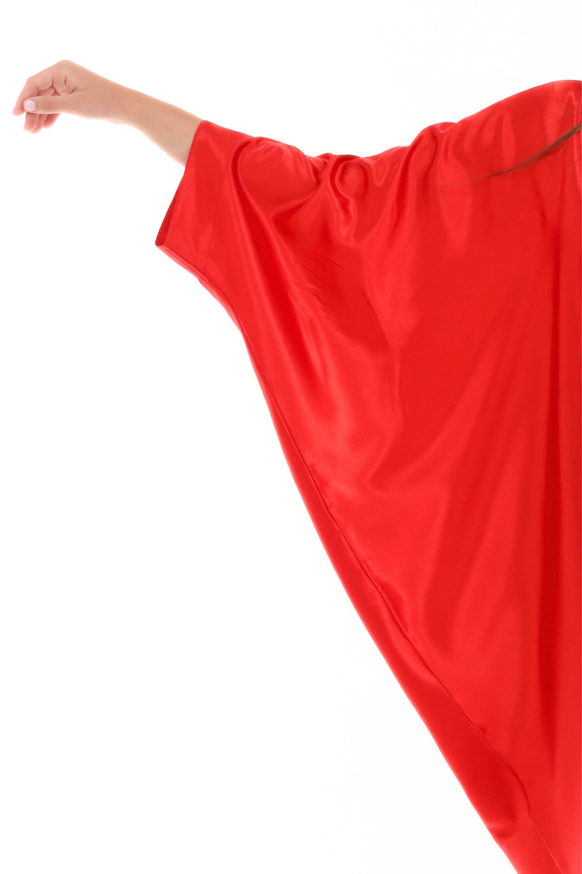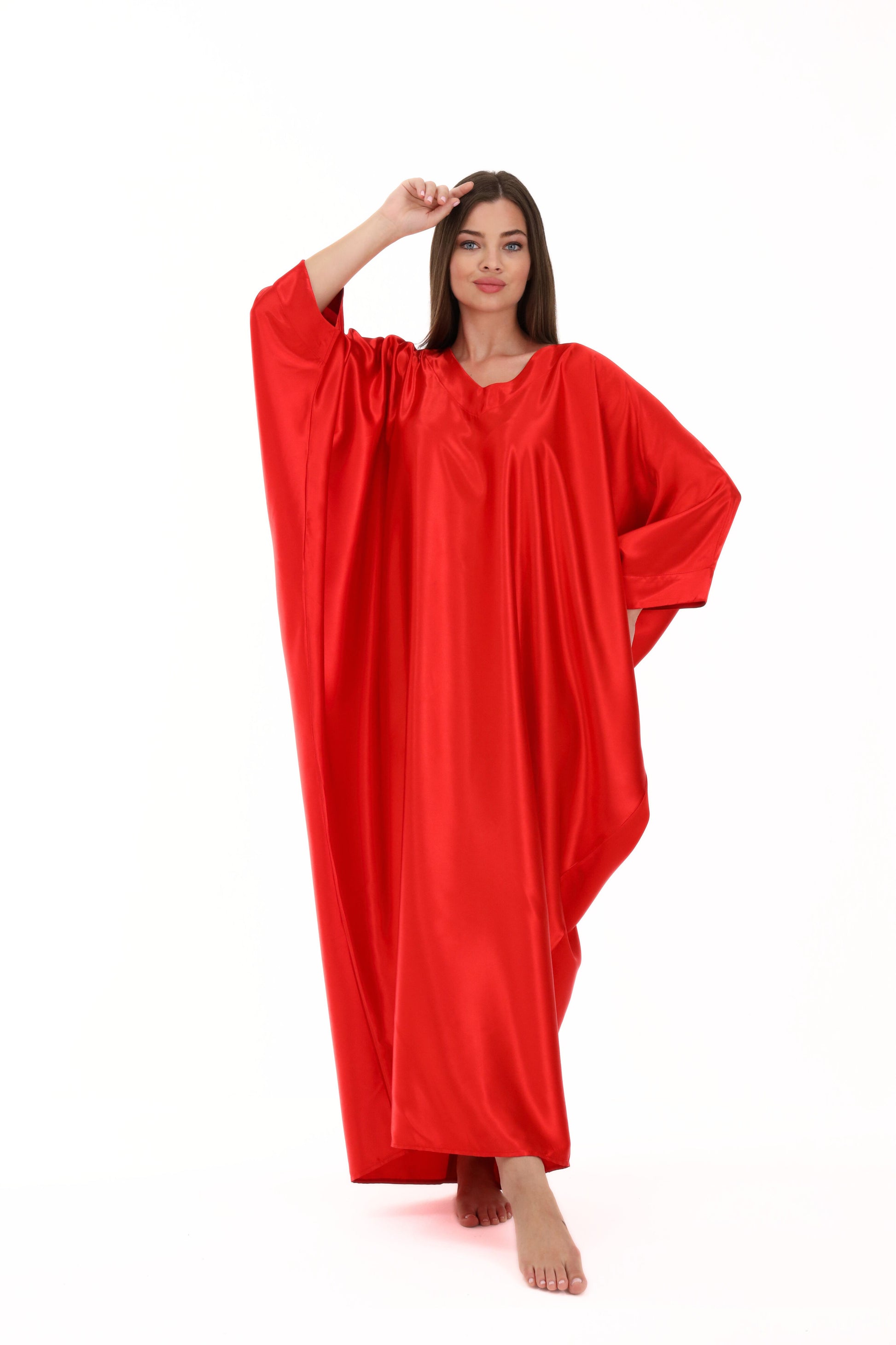 Embrace the beauty of modest fashion with the Isabela Amie Paris Modest Date Night Red Kaftan. Dress to impress and be the passionate showstopper with the Isabela Amie Paris classic red silk satin kaftan. This elegantly timeless red dress will be sure to turn heads as it romantically drapes over your body giving a slimming sensual silhouette. This kaftan is sure to boost your confidence and suitable for any occasion as it is light weight and breathable. Style it with a red or nude lipstick and a belt of any color—including the same or a different red.