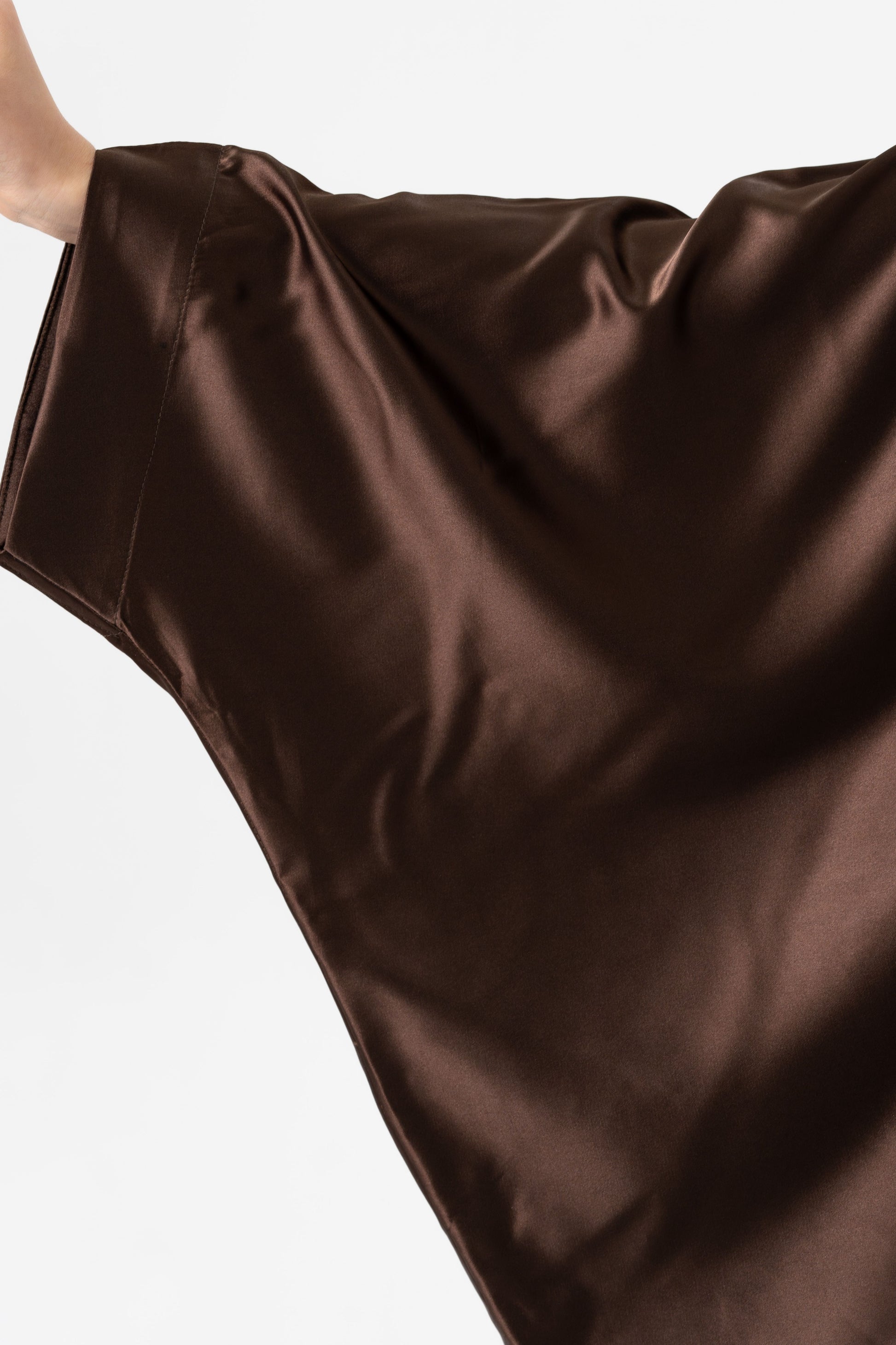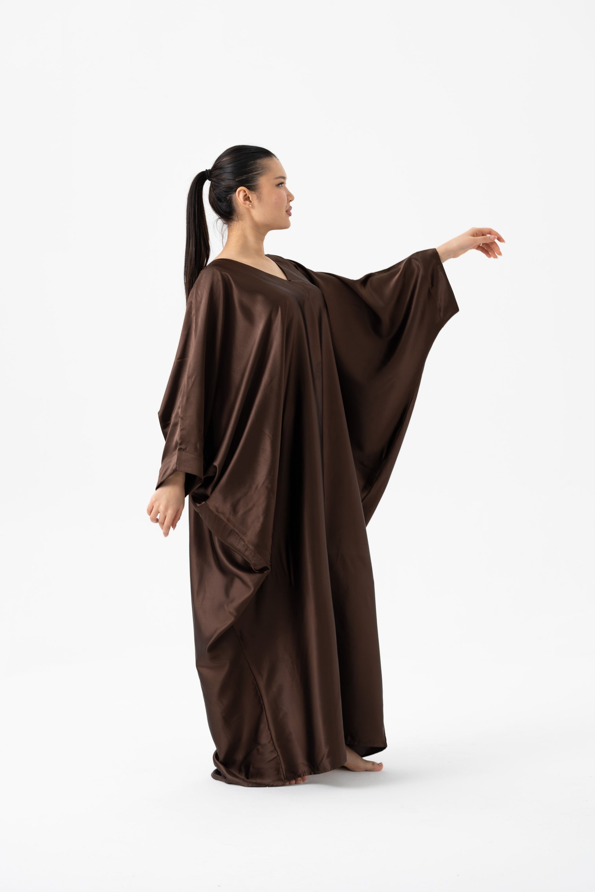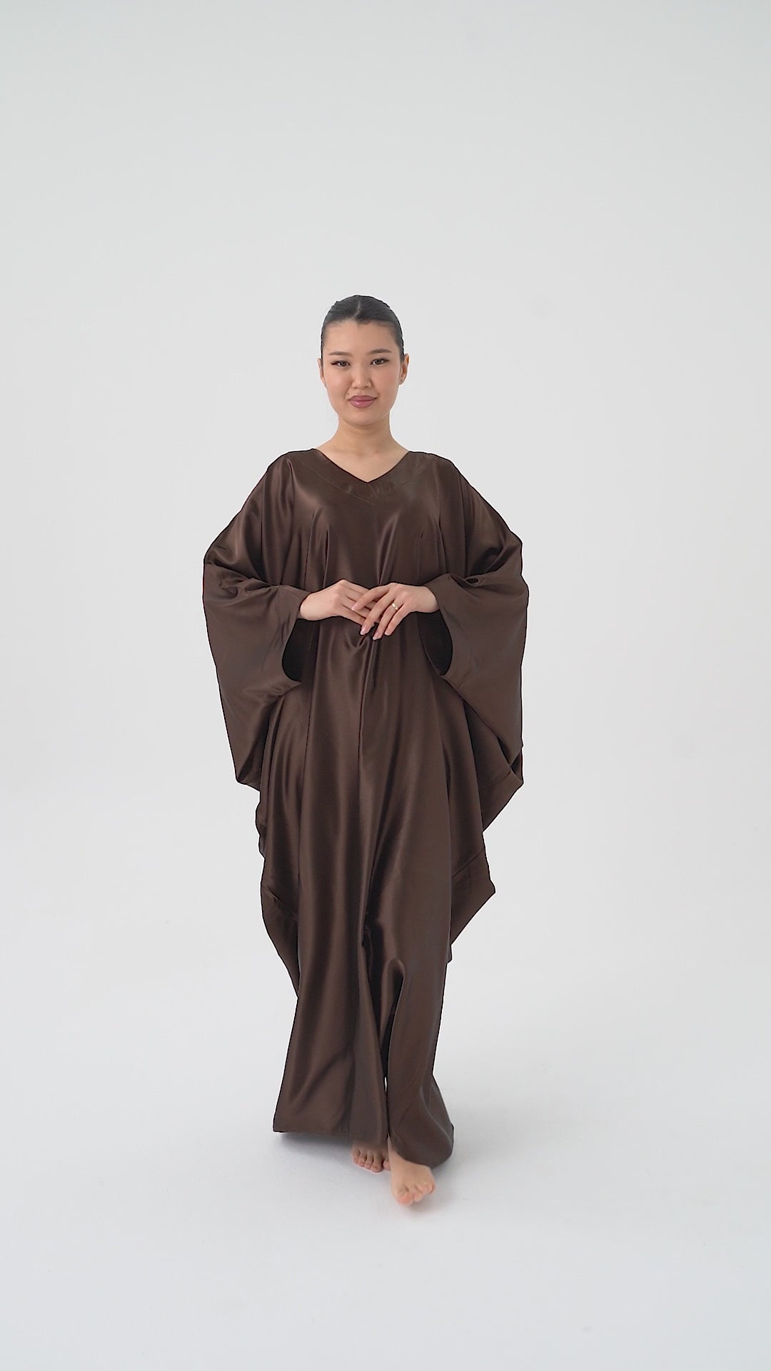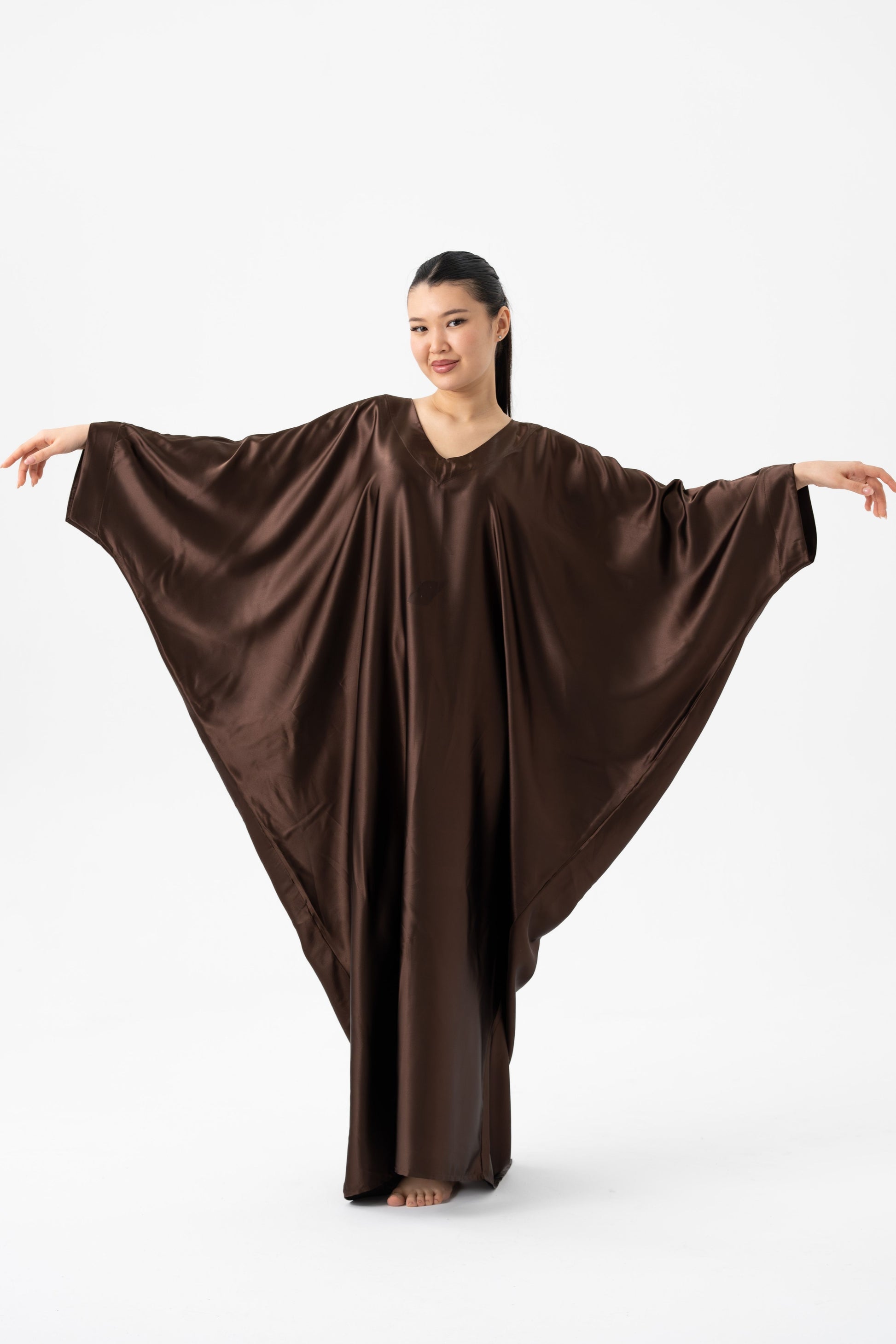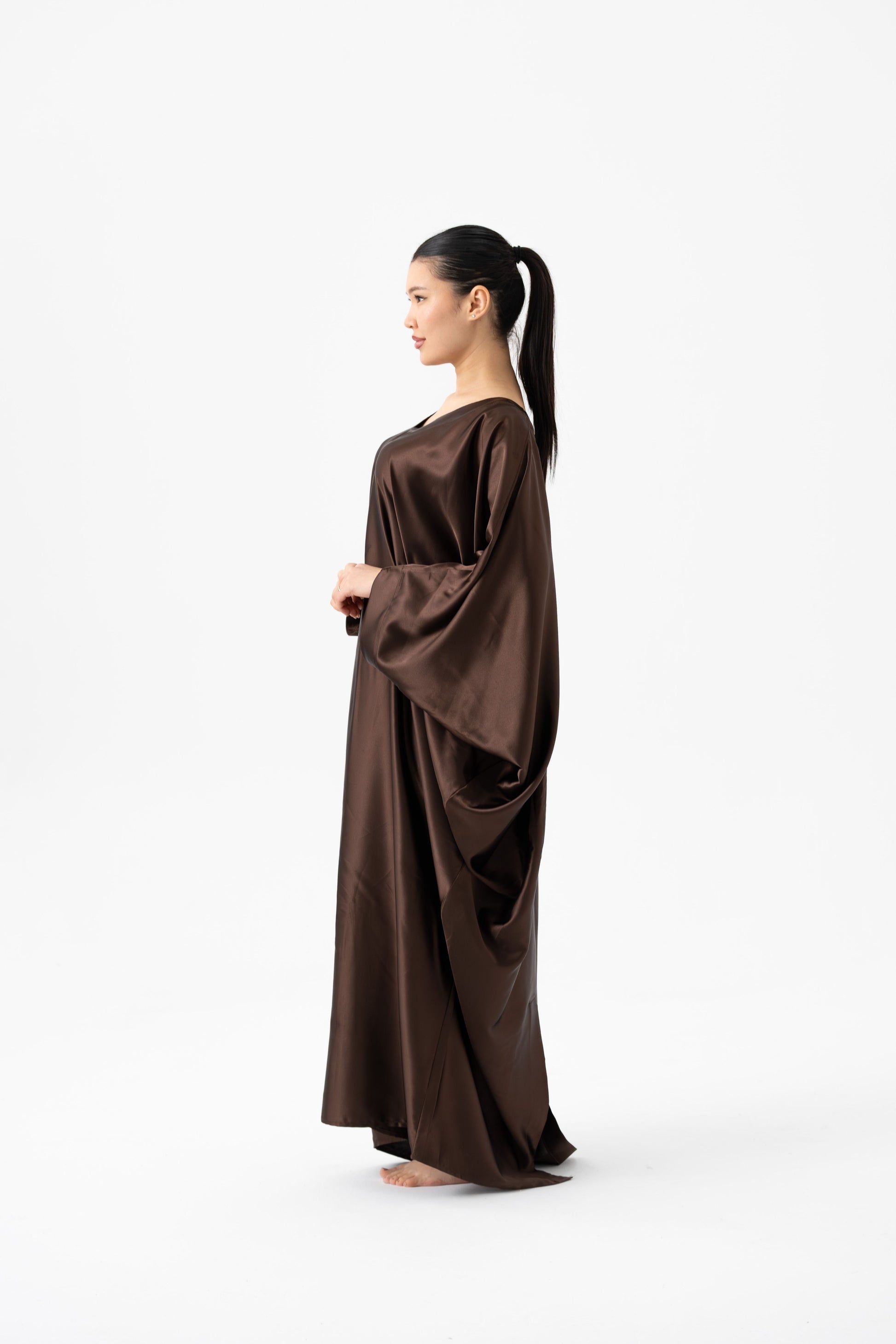 Step into a world of refined glamour with the Isabela Amie Paris Modest Espresso Brown Kaftan. This luxurious masterpiece, crafted from silky satin in a rich, dark espresso brown, drapes over the body like liquid gold. The glossy sheen and enhanced coverage create a perfect balance of modesty and high fashion, ensuring you captivate every room with effortless grace. Designed for those who know that modest fashion is for everyone, this kaftan invites you to accessorize and express your personal style with textures, colors, and sparkle because who says modest can't be fabulous?