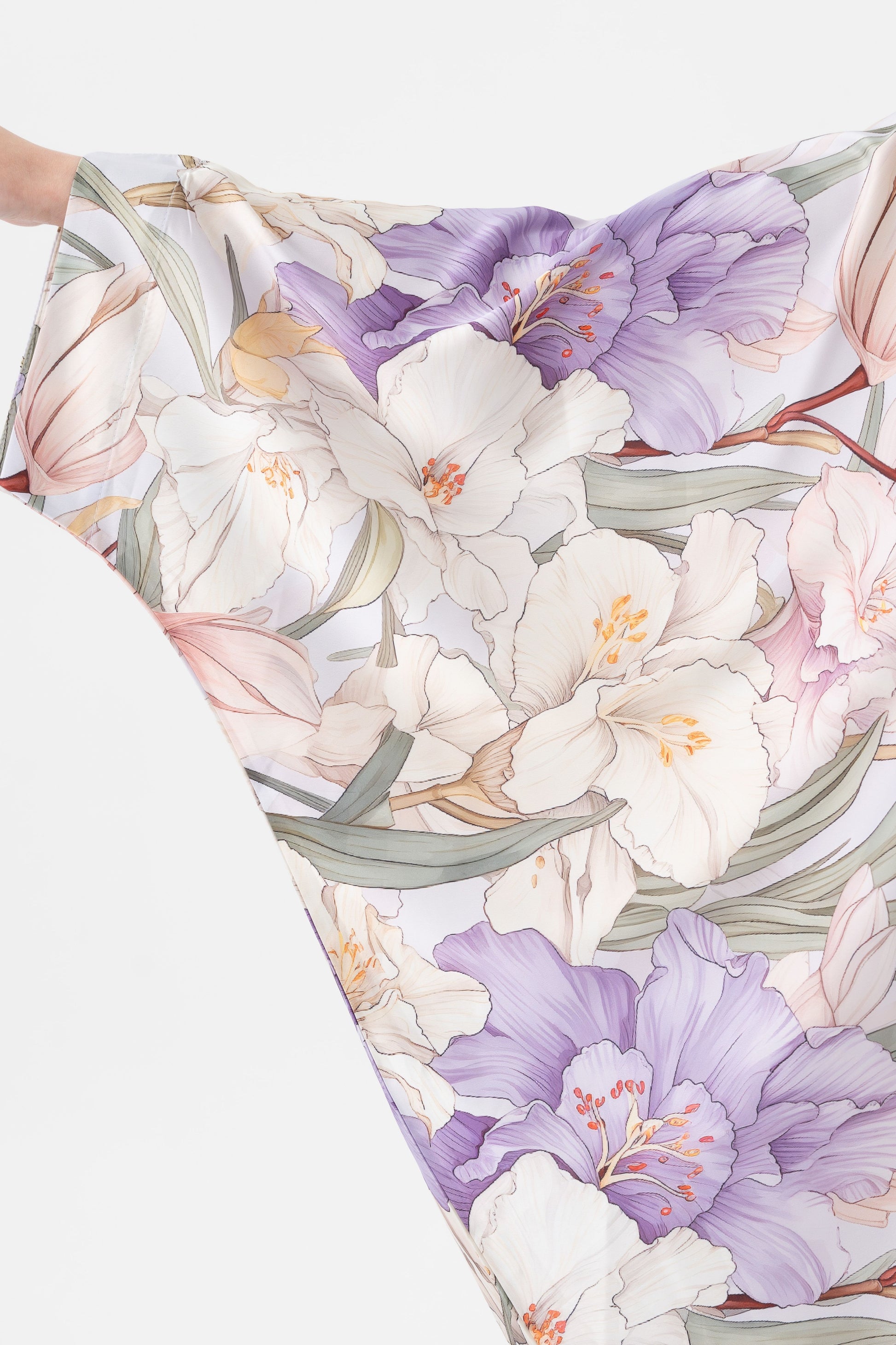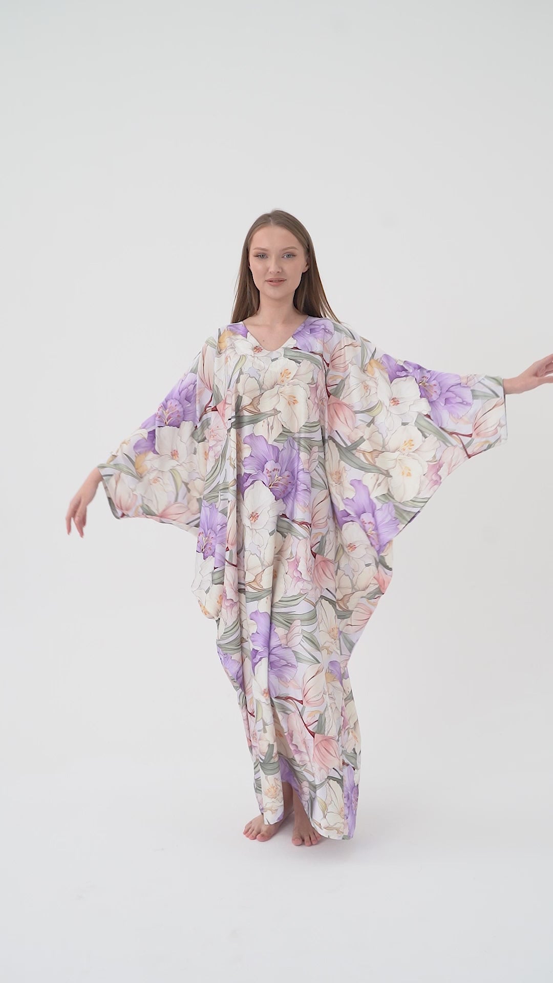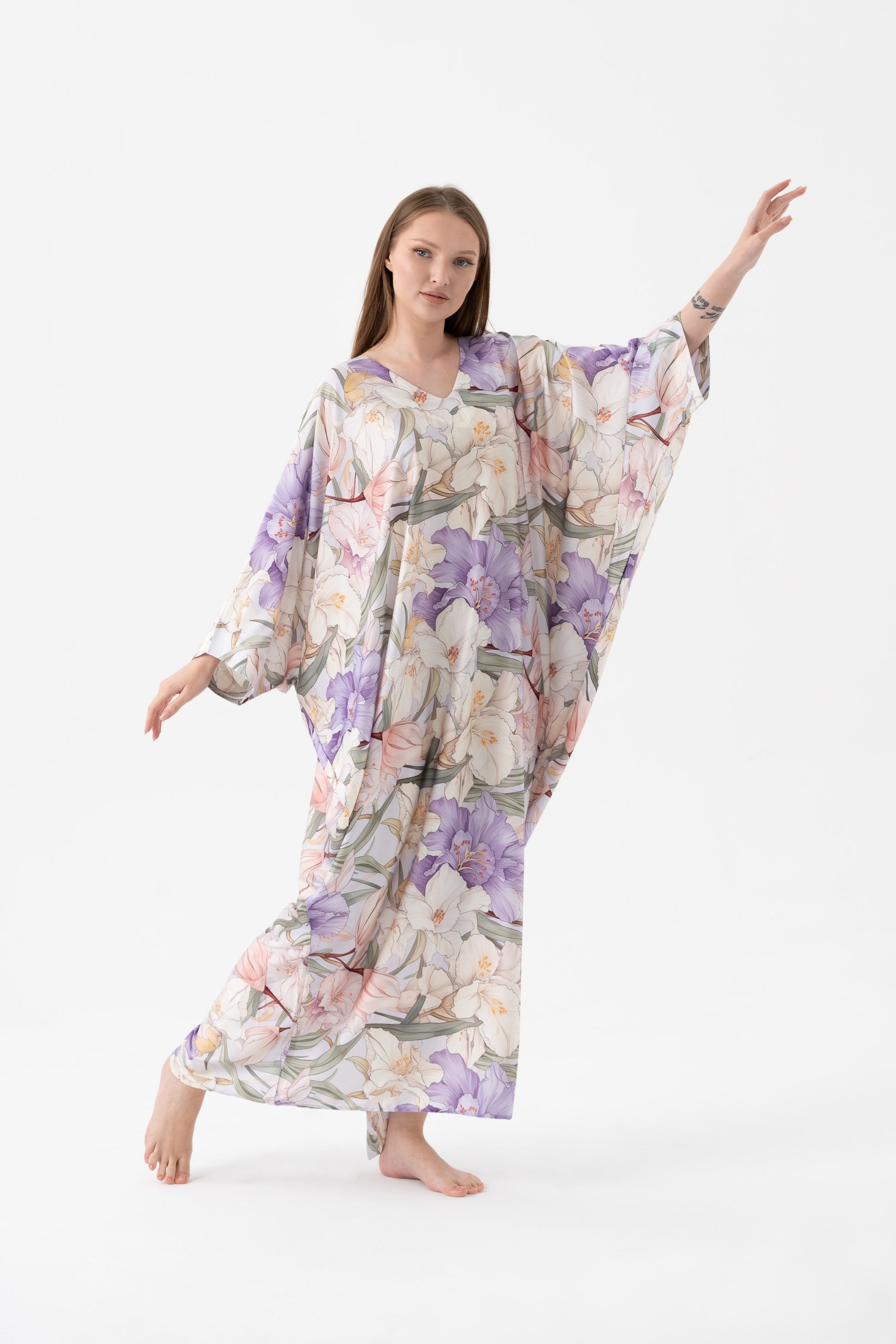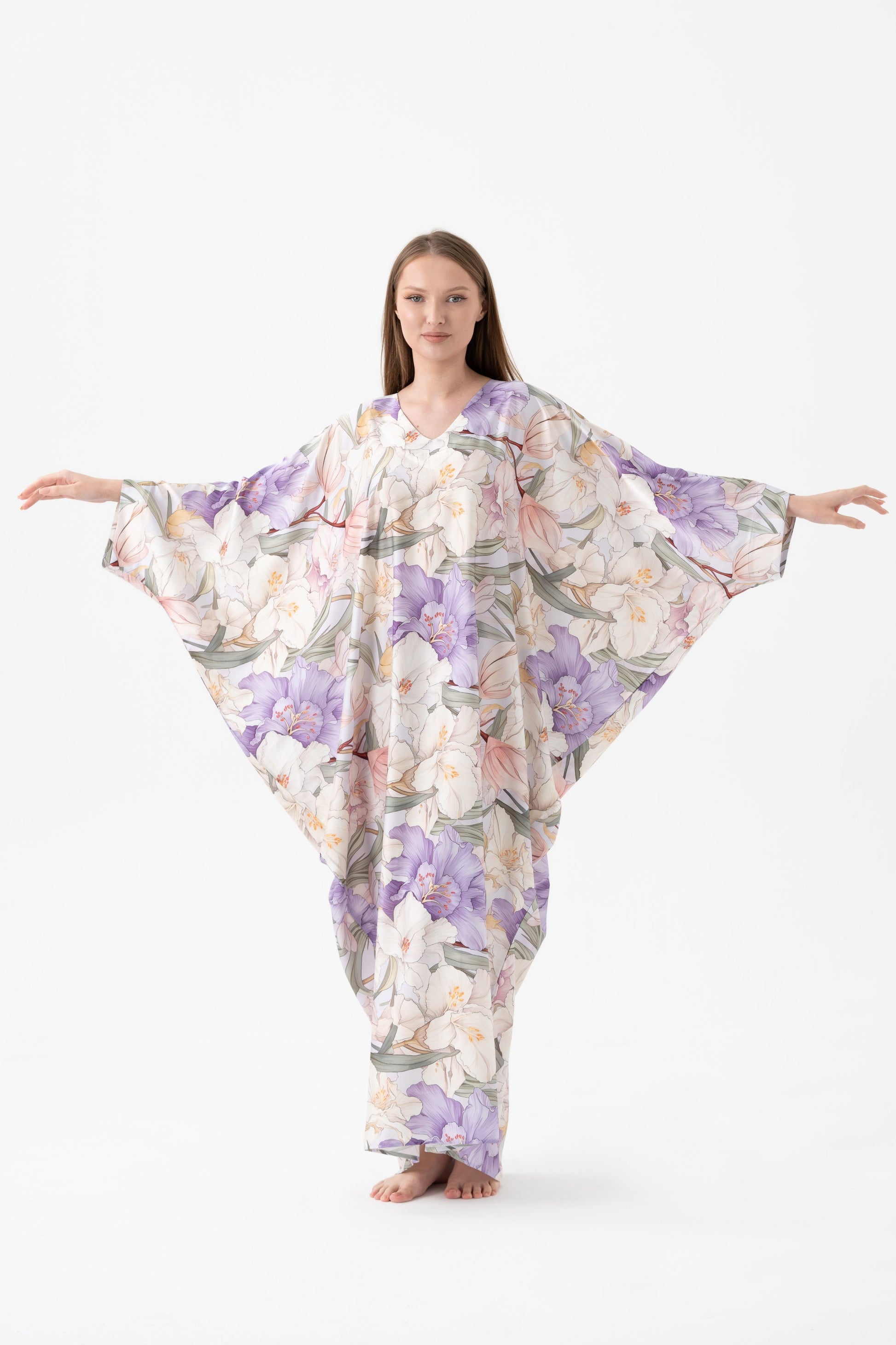 Celebrate modest fashion with the Isabela Amie Paris Modest French Lilies Kaftan. The Lilly is a delicate flower is that recognized by France as symbol of royalty, culture, light, purity and chastity. Whether your plans are to drink tea in a French garden in Paris or champagne on yacht at the French Riviera this kaftan will be sure to suit your body and your lifestyle perfectly. The silk satin drapes beautifully over your body showing a sensual silhouette as you walk by due the satin weaving techniques. The kaftan is hypoallergenic, cool, butterfly soft, elegantly shiny and wrinkle free. You can easily pack it for any trip and style with comfortable sandals or a sexy heel for a more sophisticated look.