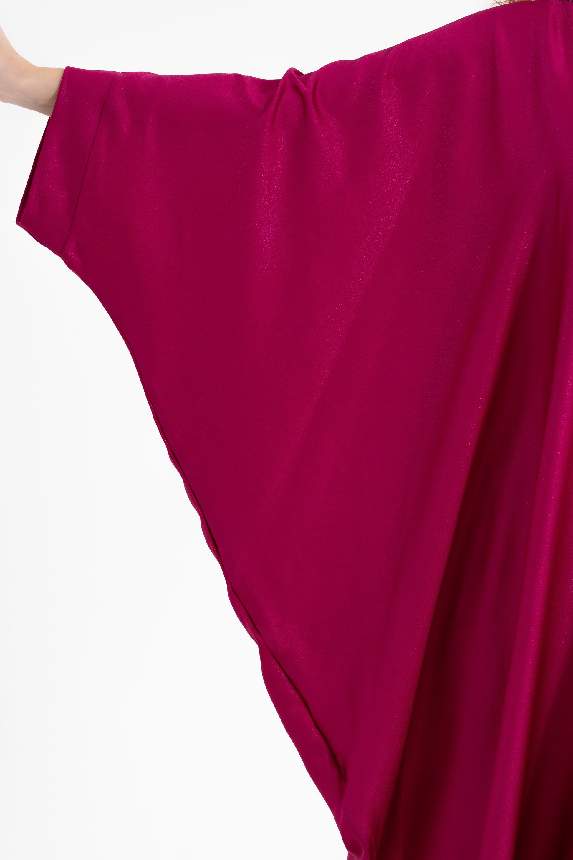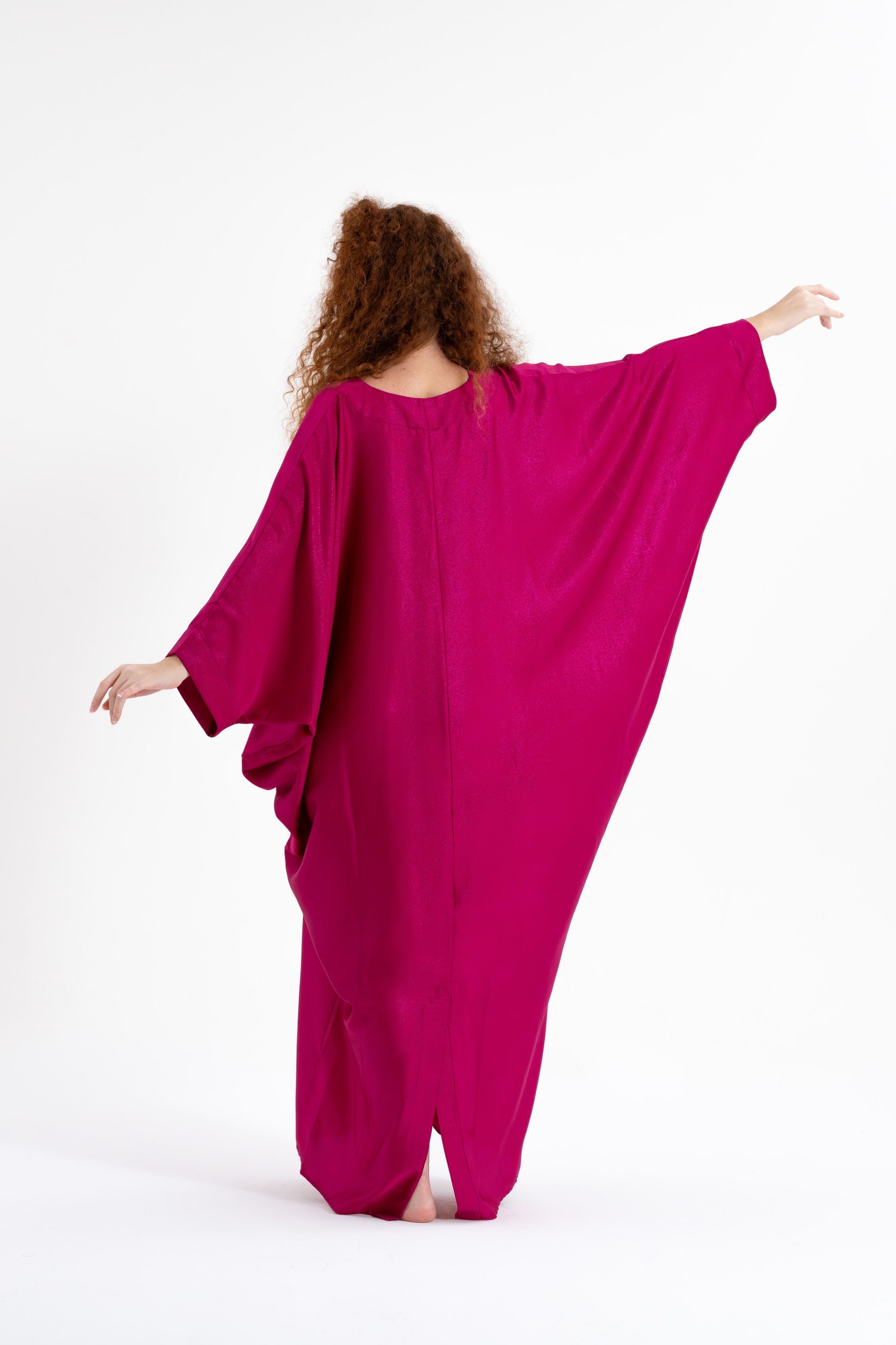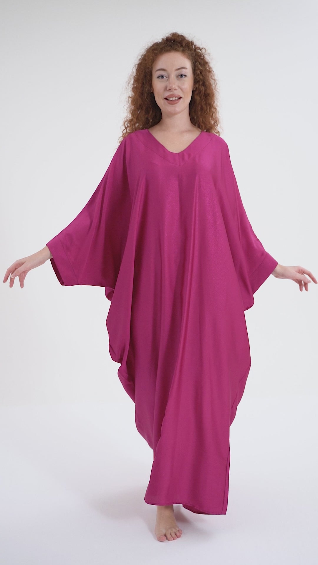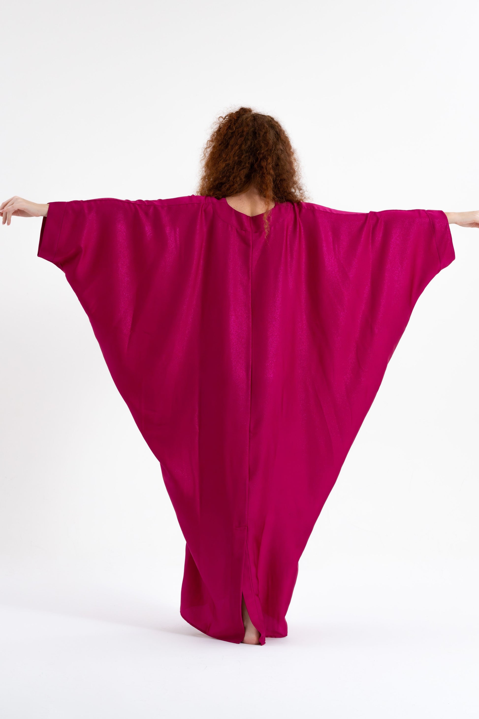 Embrace the vibrant confidence of the Isabela Amie Paris Modest Fuchsia Glitter Kaftan, where boldness meets modest elegance. This luxurious silk satin kaftan, with its striking fuchsia hue, radiates energy and independence while offering just the right amount of coverage. Inspired by the timeless beauty of the Fuchsia Plant, this kaftan evokes self-confidence and uniqueness, all while maintaining a refined modest look. Everyone can enjoy modest fashion, and this kaftan ensures you feel both beautiful and empowered. Pair it with silver or soft metallic accessories to let its radiant glow shine while celebrating your natural beauty.