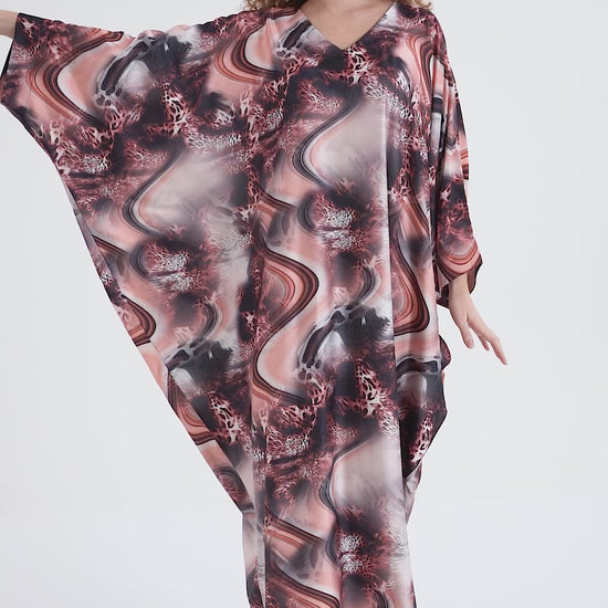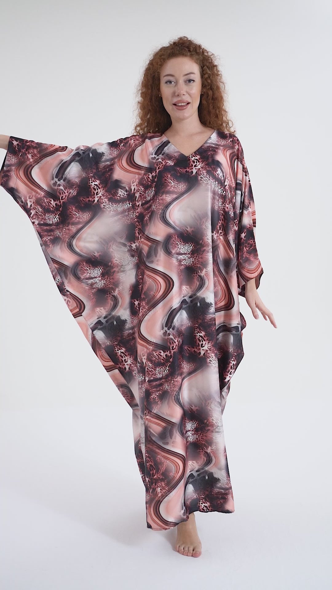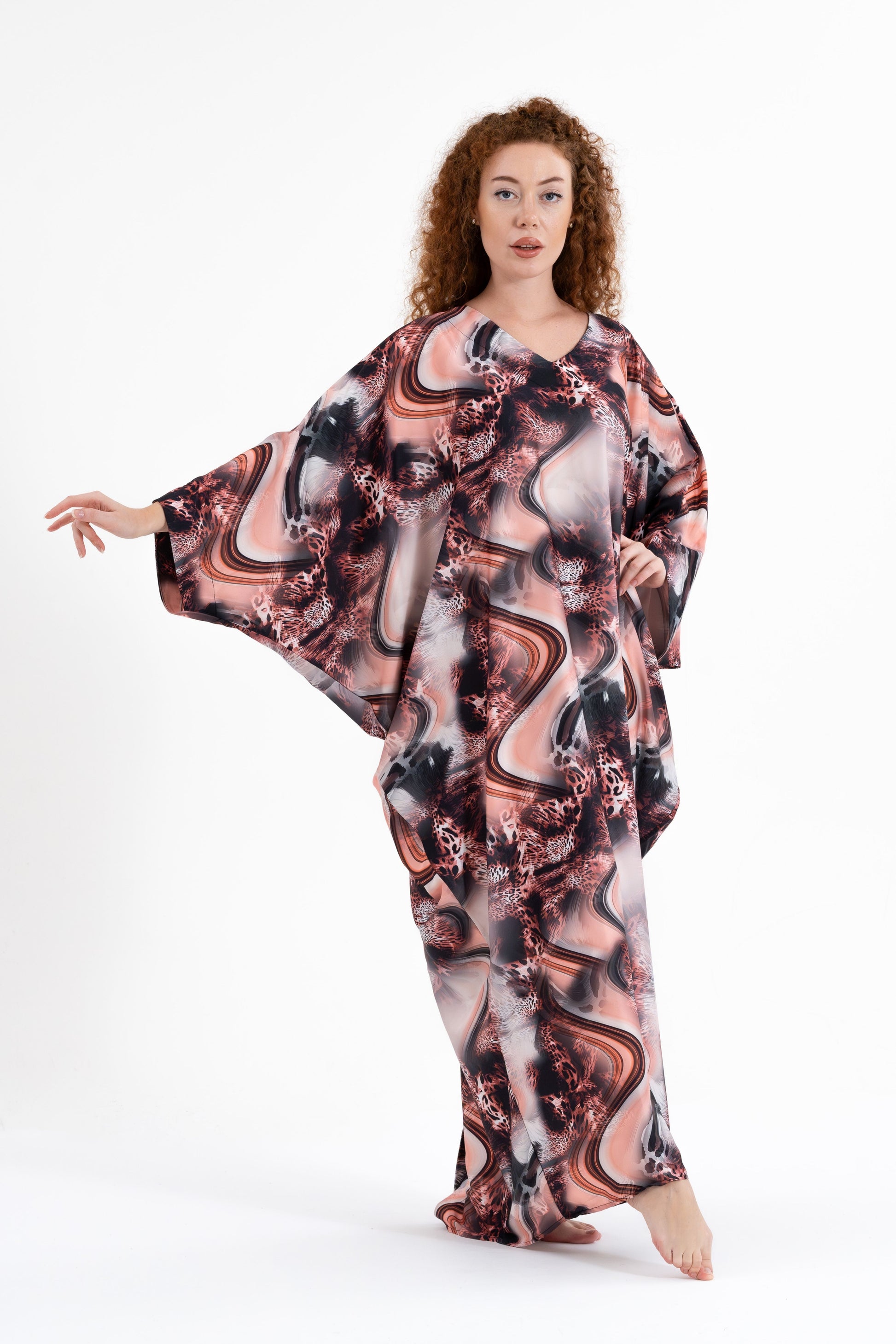 Embrace the beauty of modest fashion with the Isabela Amie Paris Modest Leopard Dreams Kaftan. Be the center of attention with this luxuriously elegant kaftan with an elaborate animal print arrangement and fanciful swirls. This silk satin kaftan is ready to wear at any event and travel destination as it is sophisticated and light weight, cool and hydrating. It will sensually drape over your body due to the satin draping effect, feeling soft and comfortable. You can style the kaftan with any preferred shoe style including a knee-high boot and matching hat; and colors such as peach, burgundy, black or silver accessories.