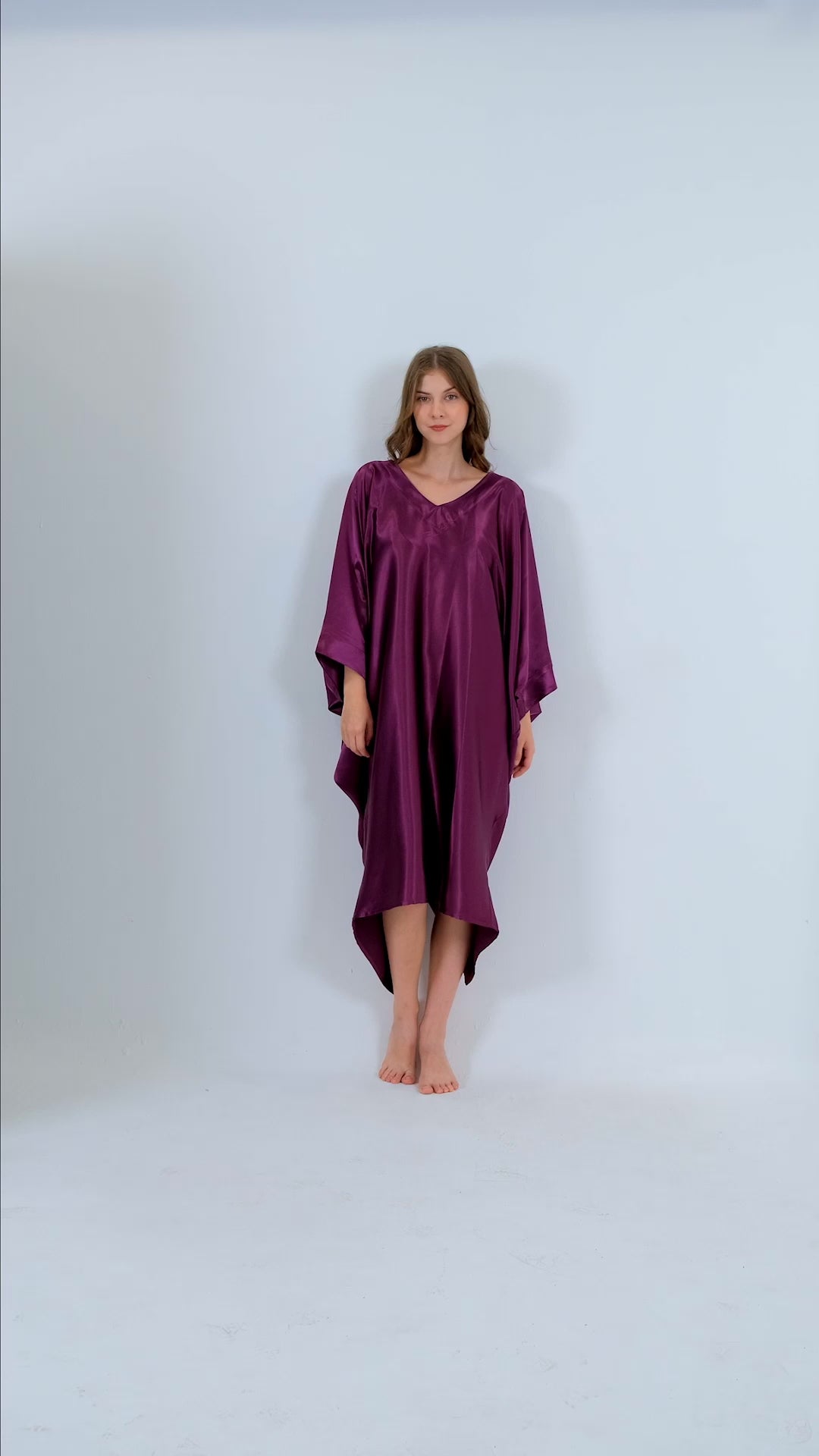 Let the Isabela Amie Paris Moonlight Purple Kaftan transport you to a realm of nocturnal elegance. Crafted in sumptuous, light-reflecting silk satin, its deep lunar-purple hue captures the mystery of a moonlit sky. The relaxed silhouette drapes fluidly over the body, creating sensual yet effortless glamour. Subtle ripples in the fabric echo how moonlight shimmers on water, while a softly gathered neckline and wide, flowing sleeves lend modern sophistication. Perfect for an evening soiree or a luxe resort escape, this kaftan marries timeless craftsmanship with contemporary allure.