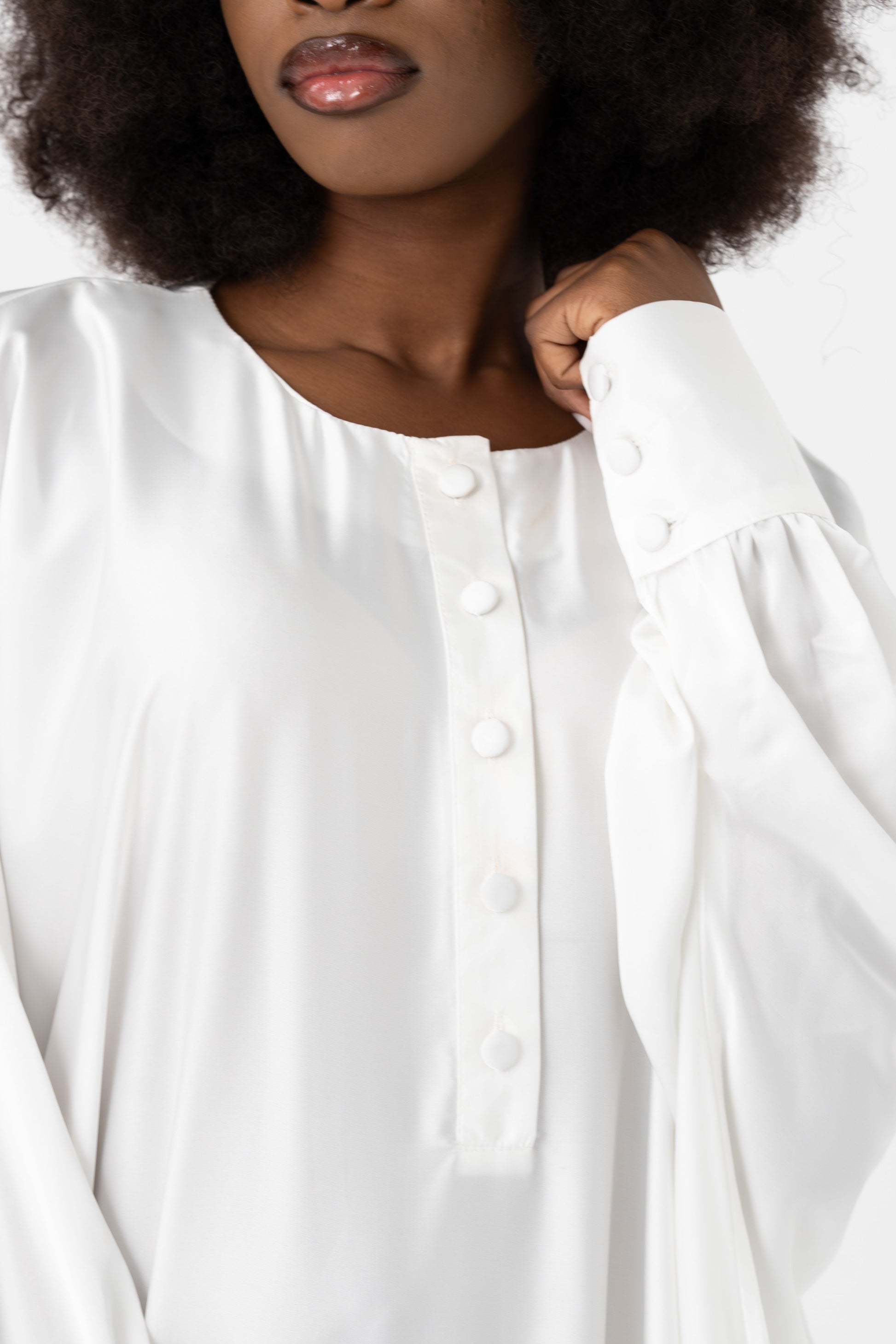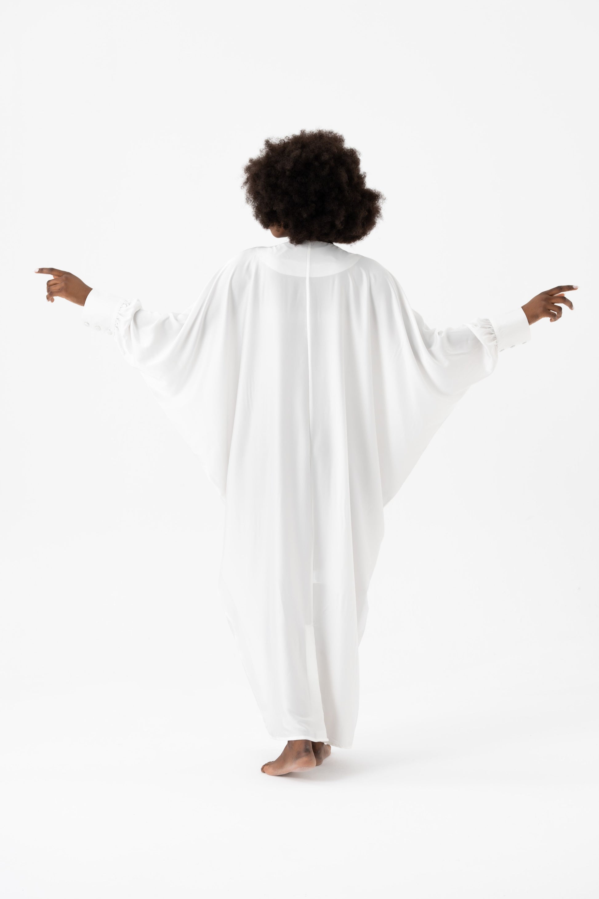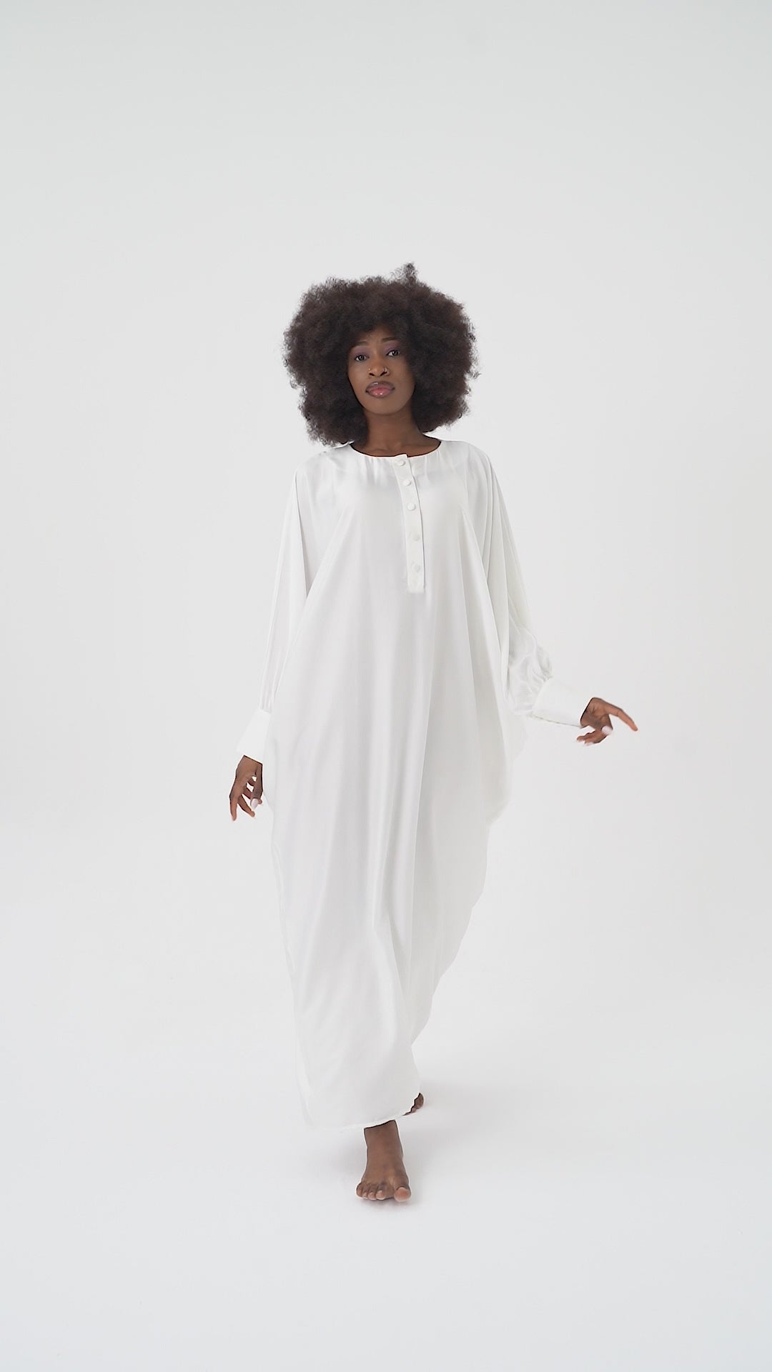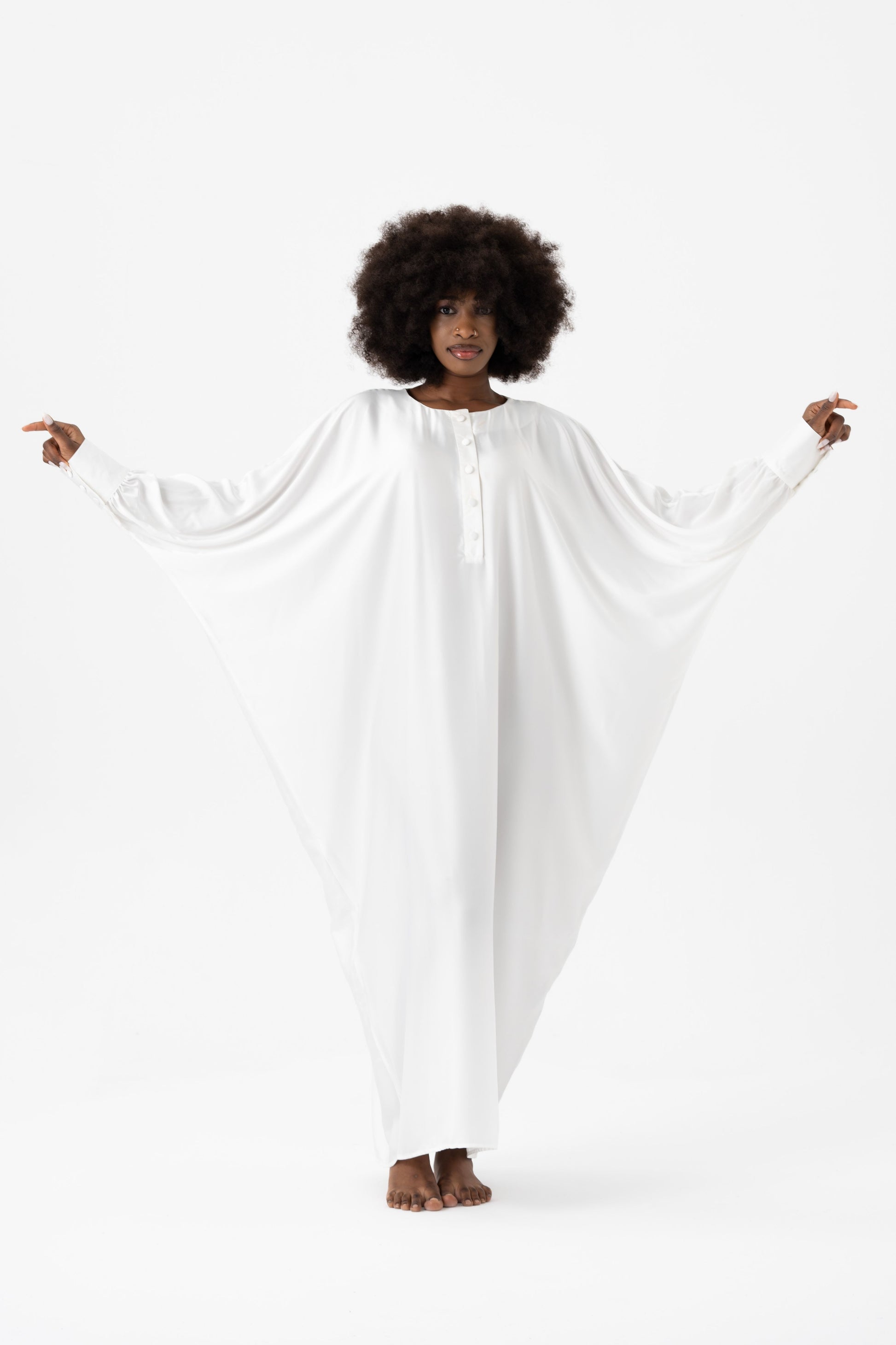 Step into full-coverage luxury with the Isabela Amie Paris Traditional Pure White Kaftan. Life is too short for anything less than a effortless and feminine white silky soft kaftan dress. This designer kaftan with a sensually impeccable silhouette is the perfect outfit for an elegant style suitable for any occasion. This kaftan will look beautiful at a travel destination with a beautiful backdrop scenery, including an opulent historical cathedral or mosque wedding. You can easily pack this kaftan in your luggage and travel with it as staple clothing item, as it is wrinkle free in nature, light weight and cool. Light reflects off the fabric from the satin weave giving a luxurious look; while easily paring any color or accessories, depending on your mood or inspiration.