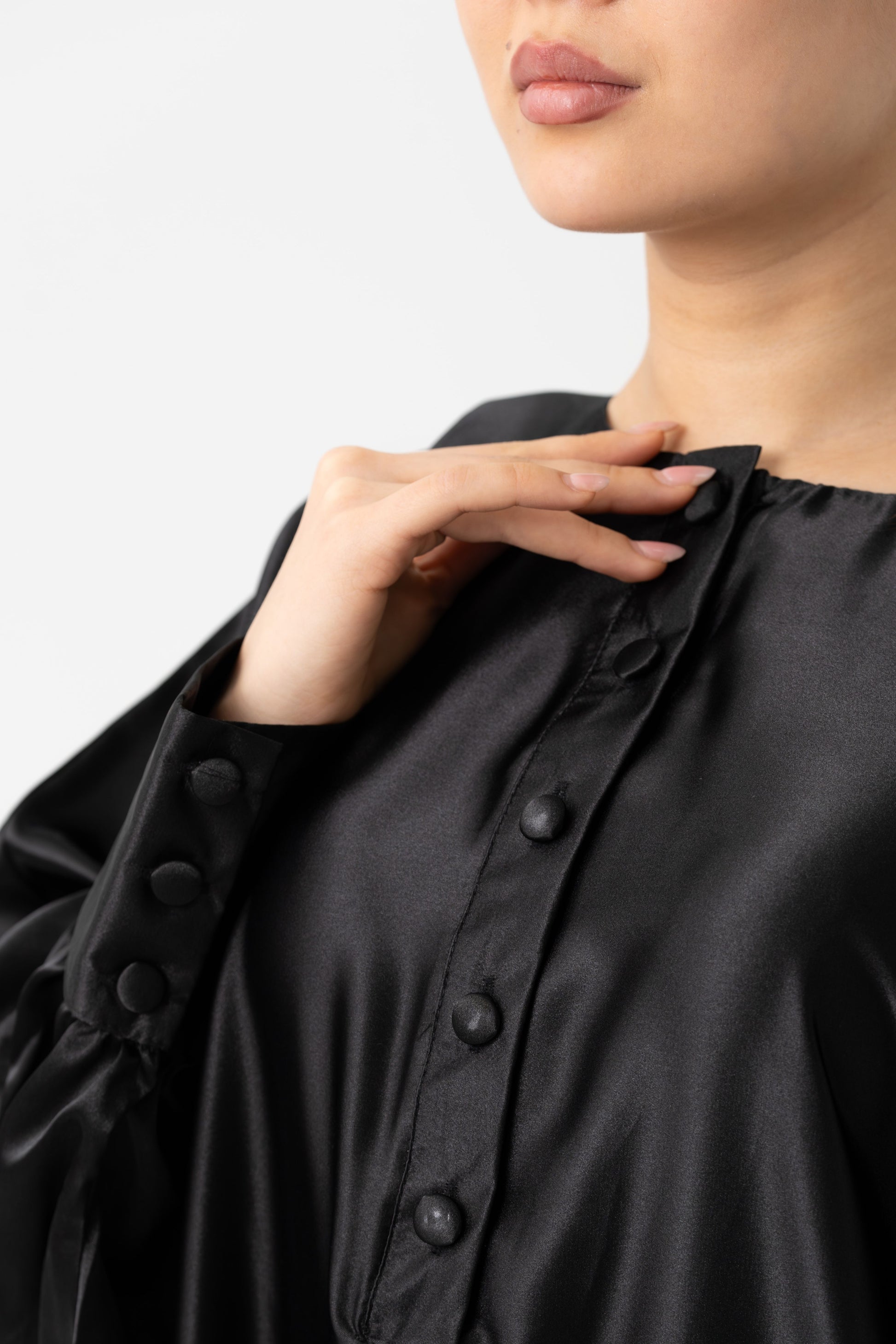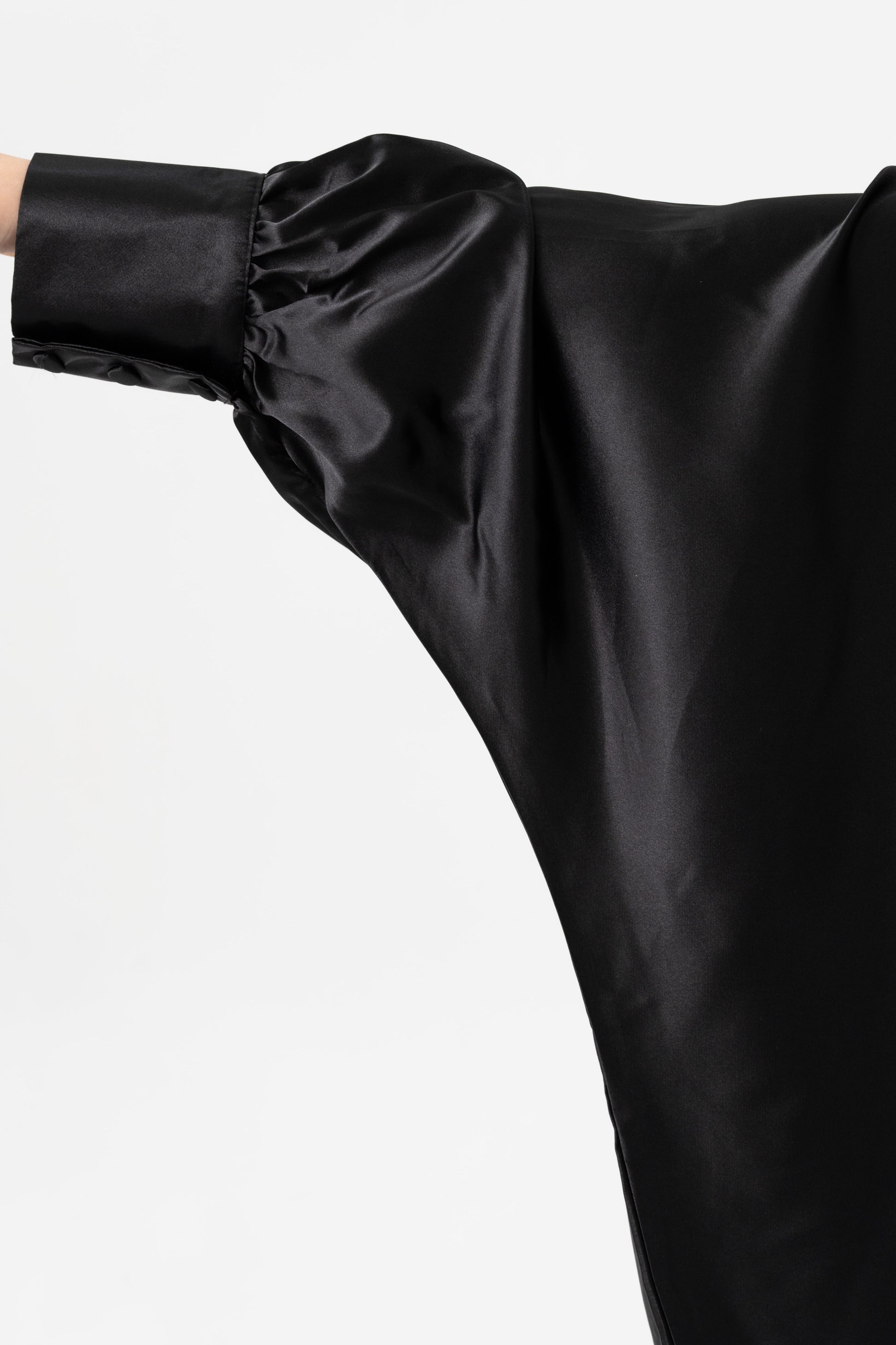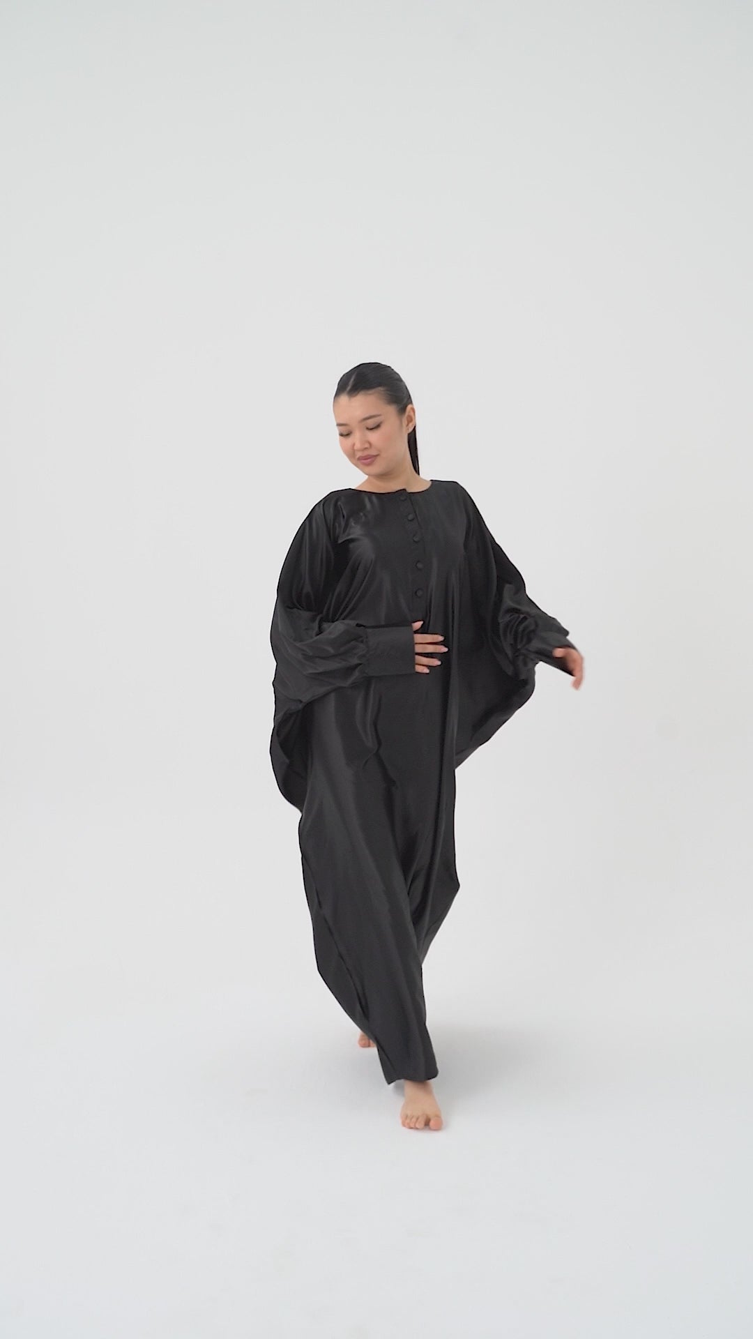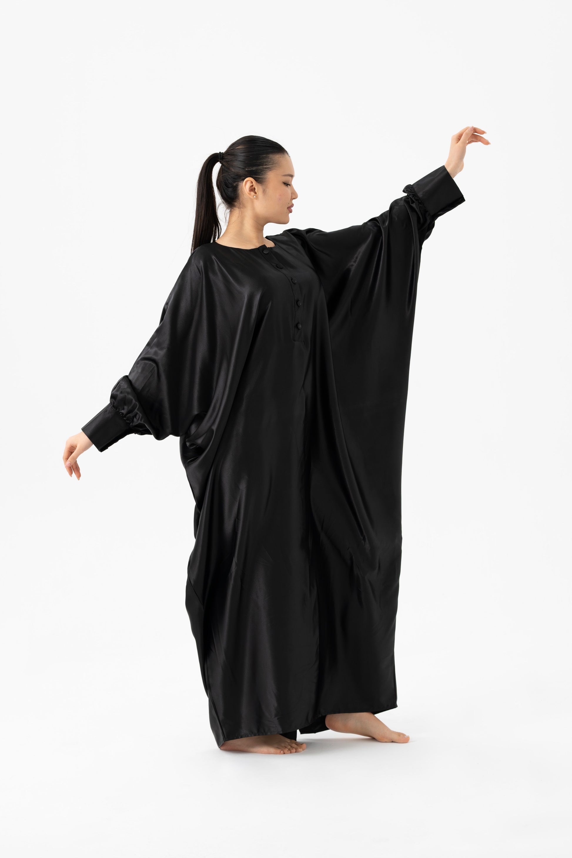 Step into full-coverage luxury with the Isabela Amie Paris Traditional Silky Black Kaftan. The ultimate must have romantically versatile black silk satin dress is a unique staple for your wardrove. You can wear it at any time for a mysterious, elegant and classy look as it accentuates and slims your figure. The satin weave will create a powerfully elegant drape around your silhouette that will flow with movement as well as remain wrinkle free, light weight and cool. You can style this luxurious kaftan with endless possibilities limited only by your imagination.