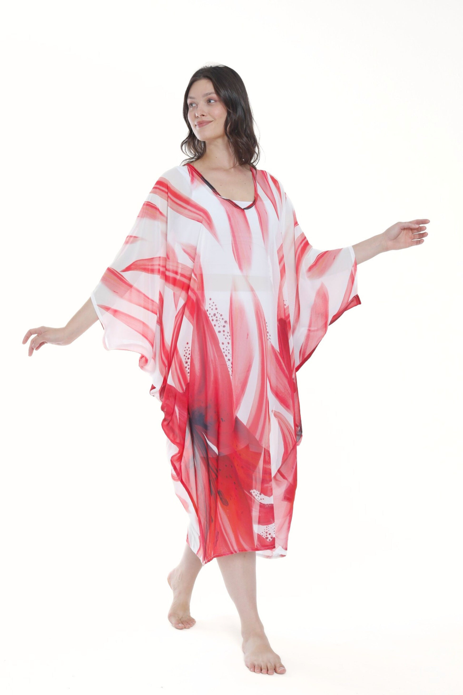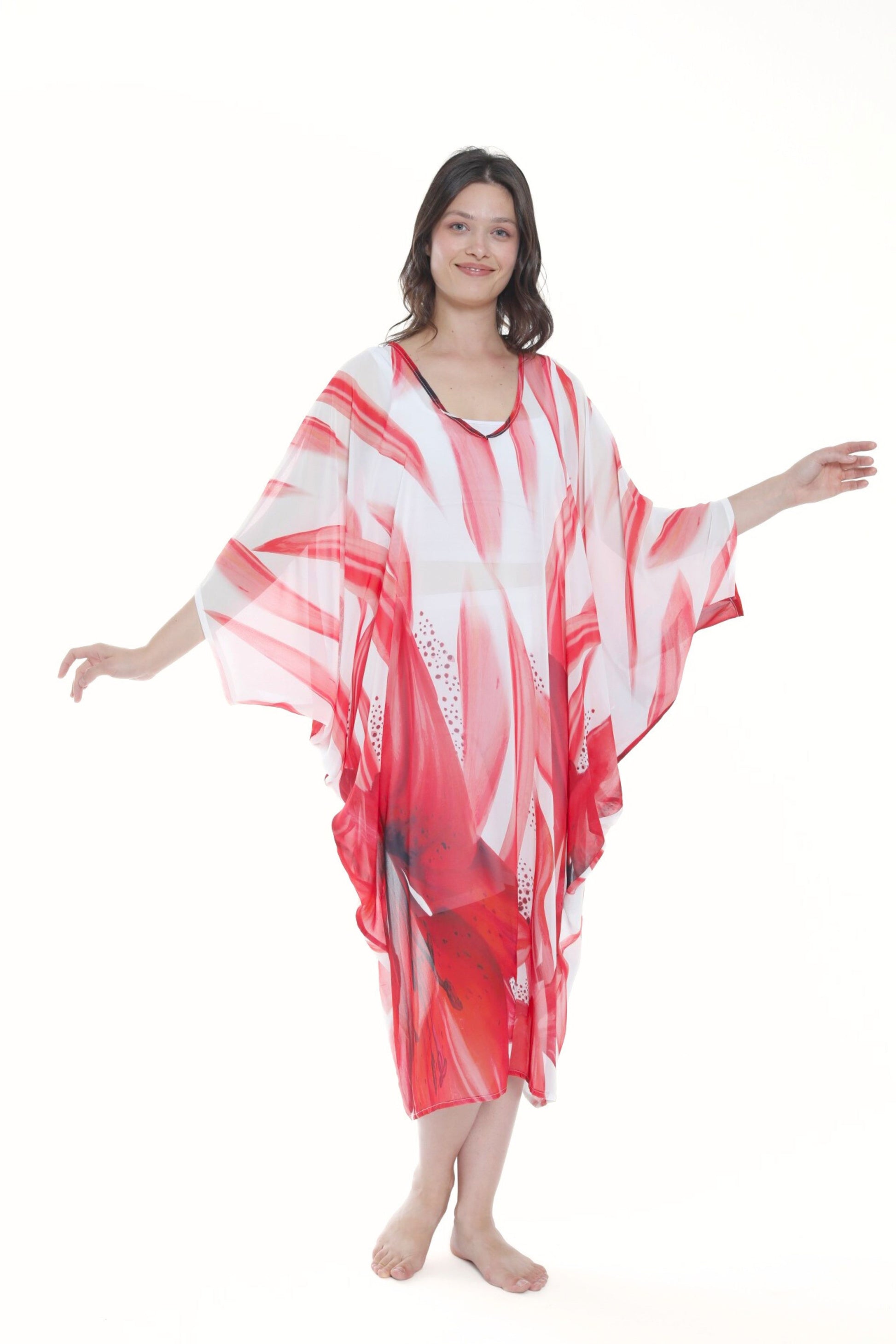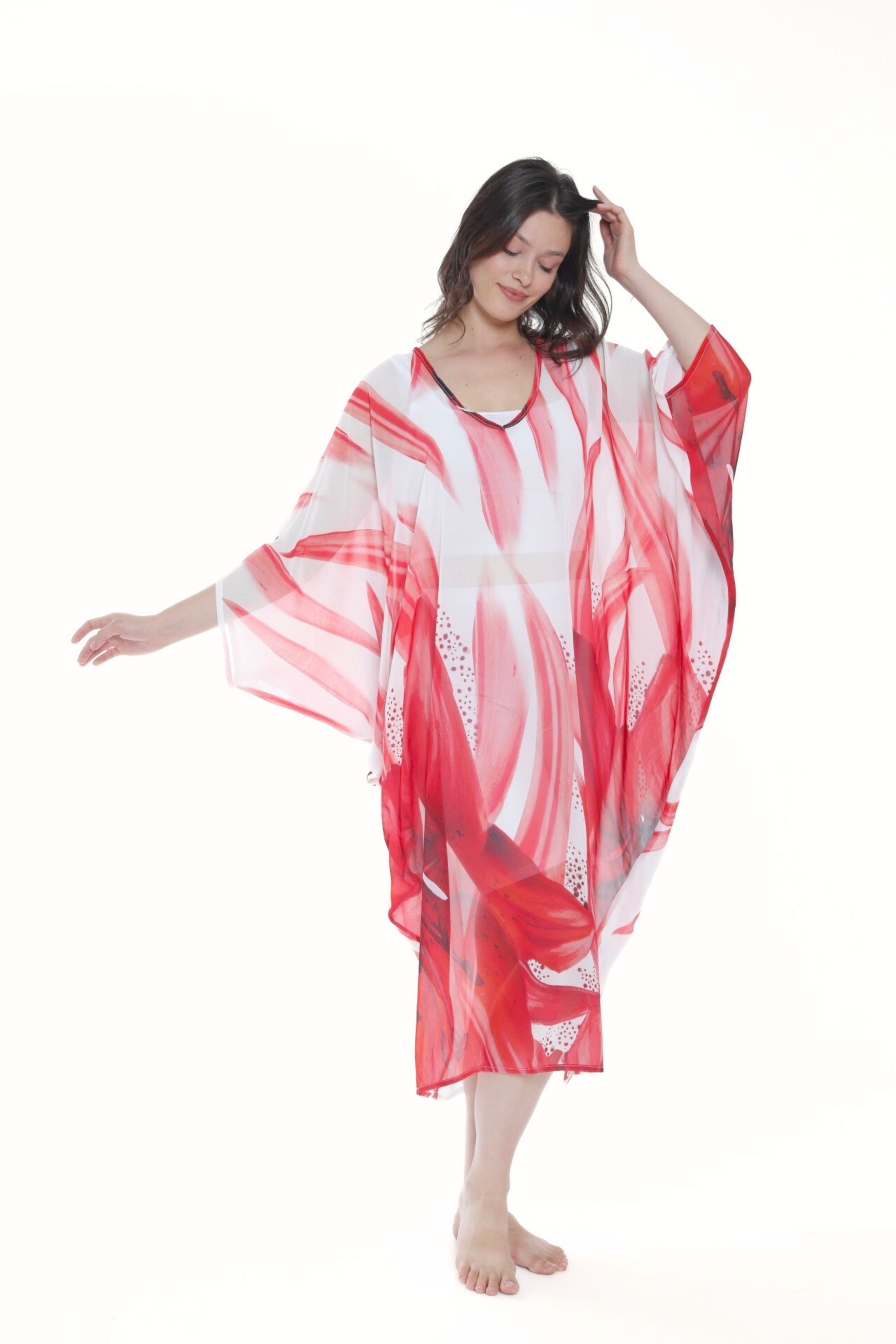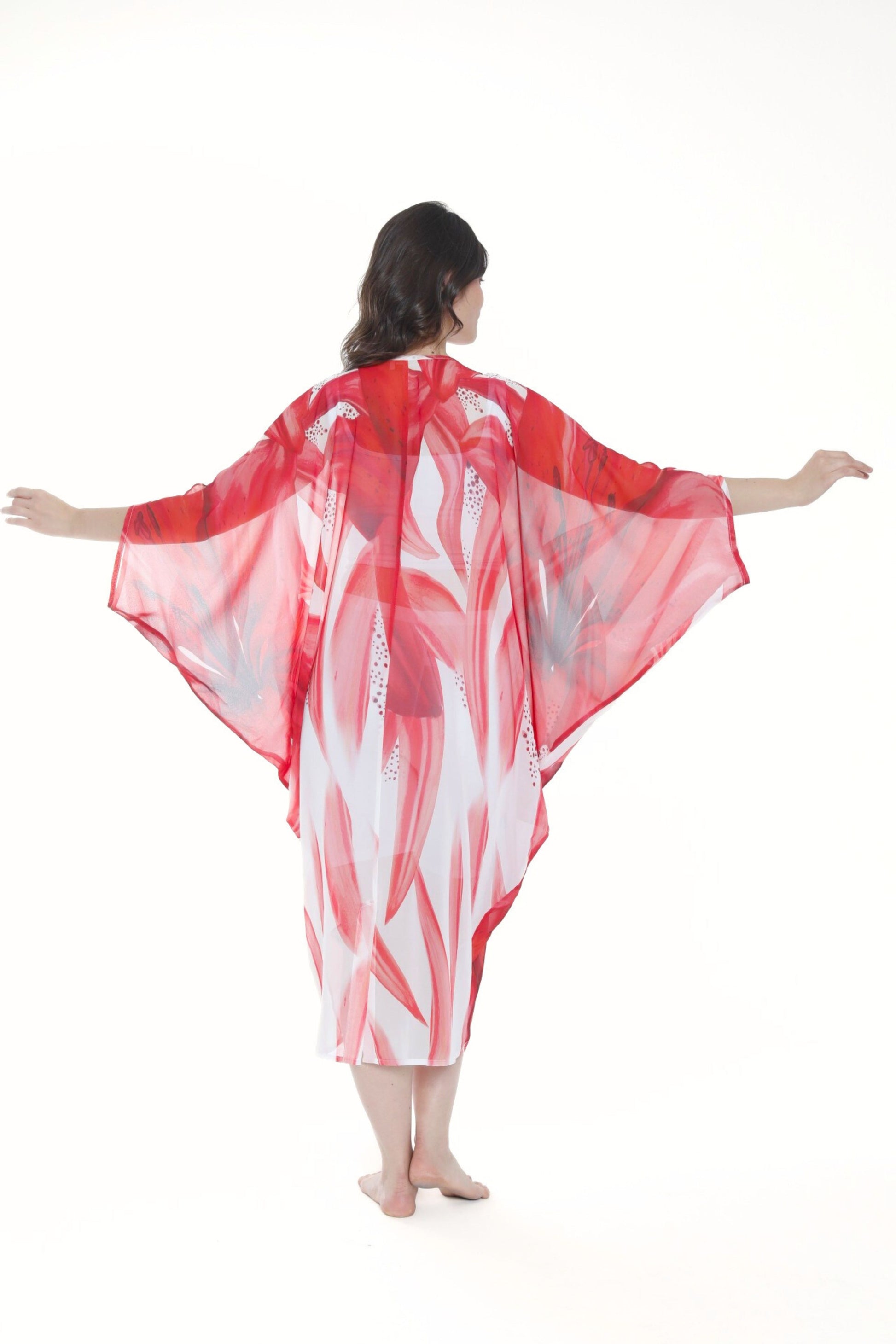 Tropical Red Lily Modern Kaftan